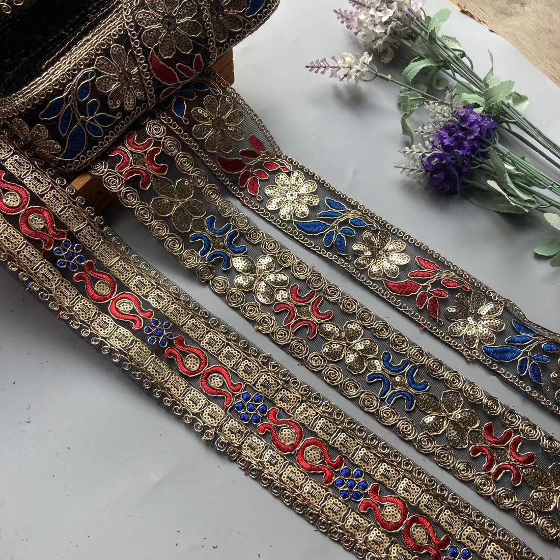 Ethnic Style Sequined Strand Embroidery Lace Bronze Gold Embroidered Accessories