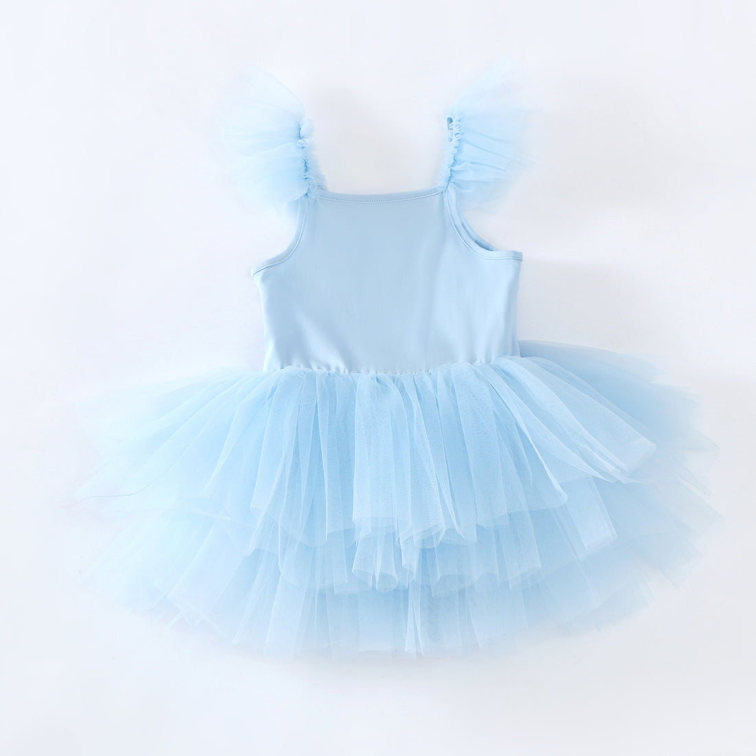 Girls' Dancing Leaf Clothing Mesh Gymnastics Clothes Children Sky Blue Practice Skirt