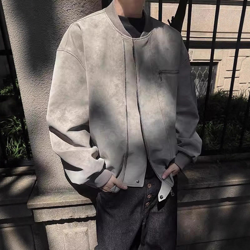 Mechanical Style Flying Motorcycle Leather Short Casual Baseball Jacket Men