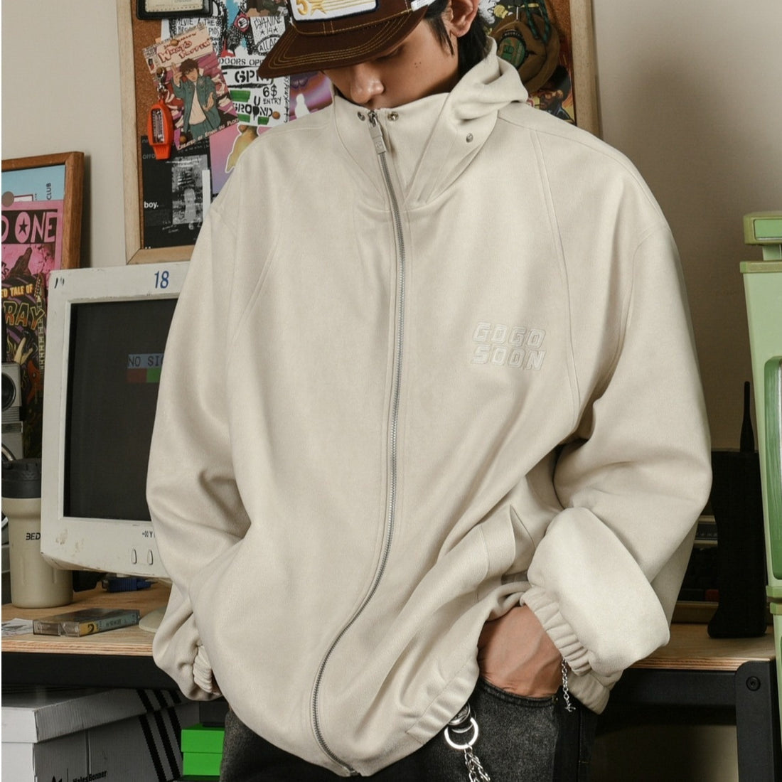 Men's Thick Loose Pu Shuai Embroidered Zipper Hooded Jacket