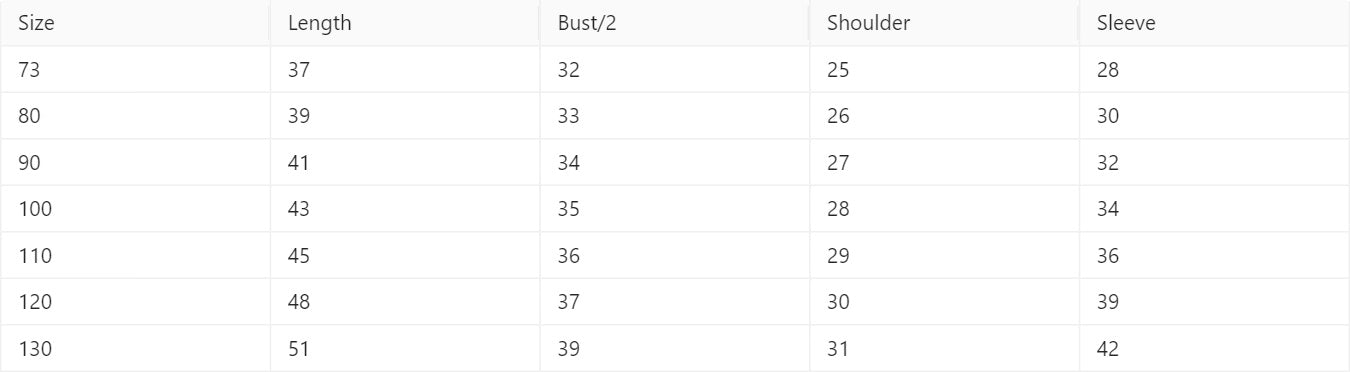 Suitable height: clothing label 73, clothing label 80, clothing label 90, clothing label 100, clothing label 110, clothing label 120, clothing label 130