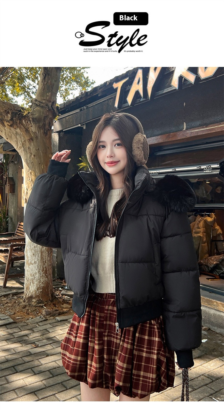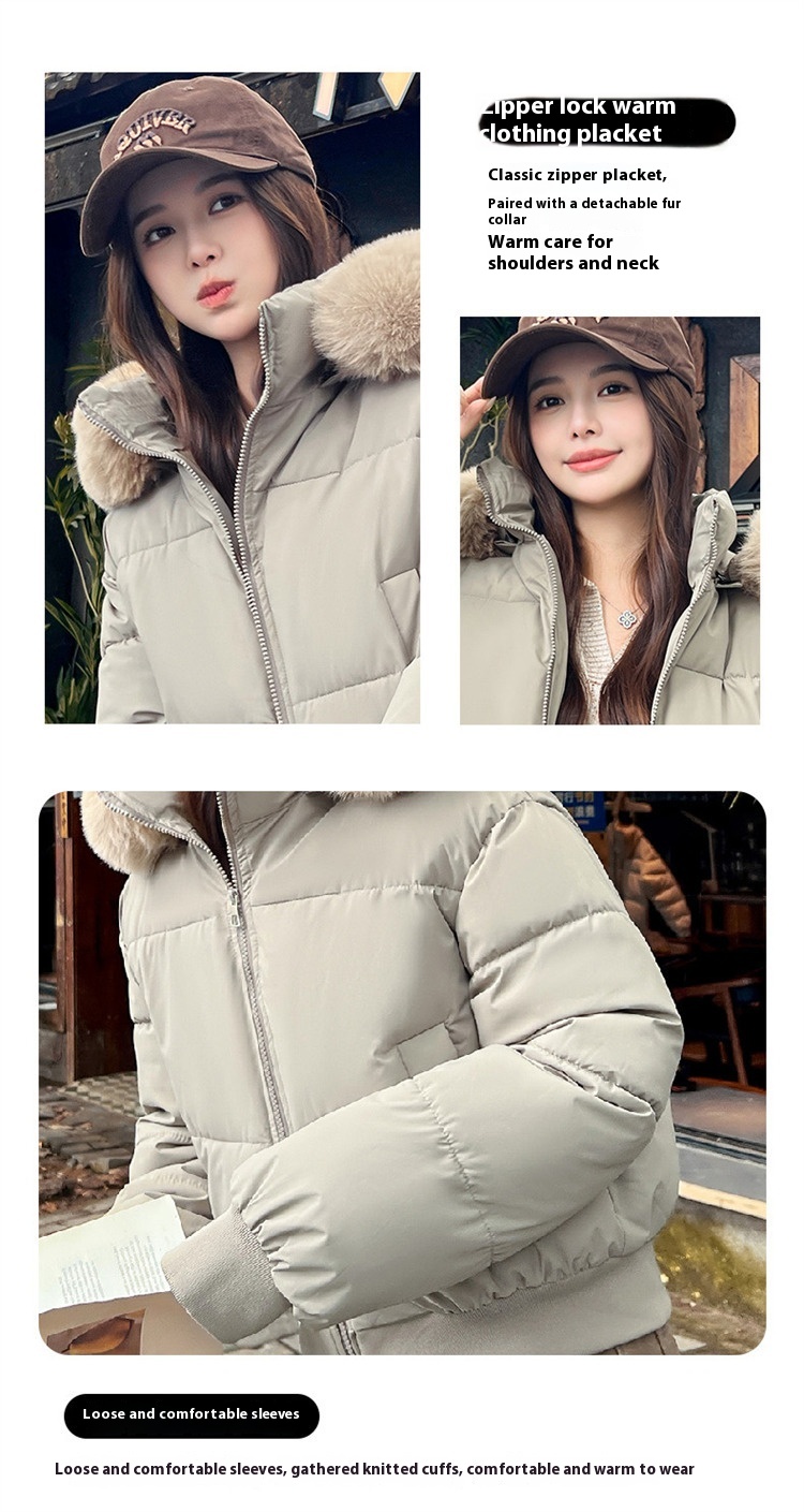 Big Fur Collar Hooded Thickened Warm And Loose Coat