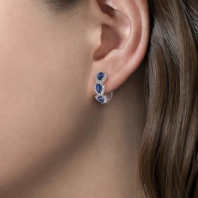 Blue New Style Zircon Earrings Elegant Socialite Accessories Retro Magazine Style Ear Clip