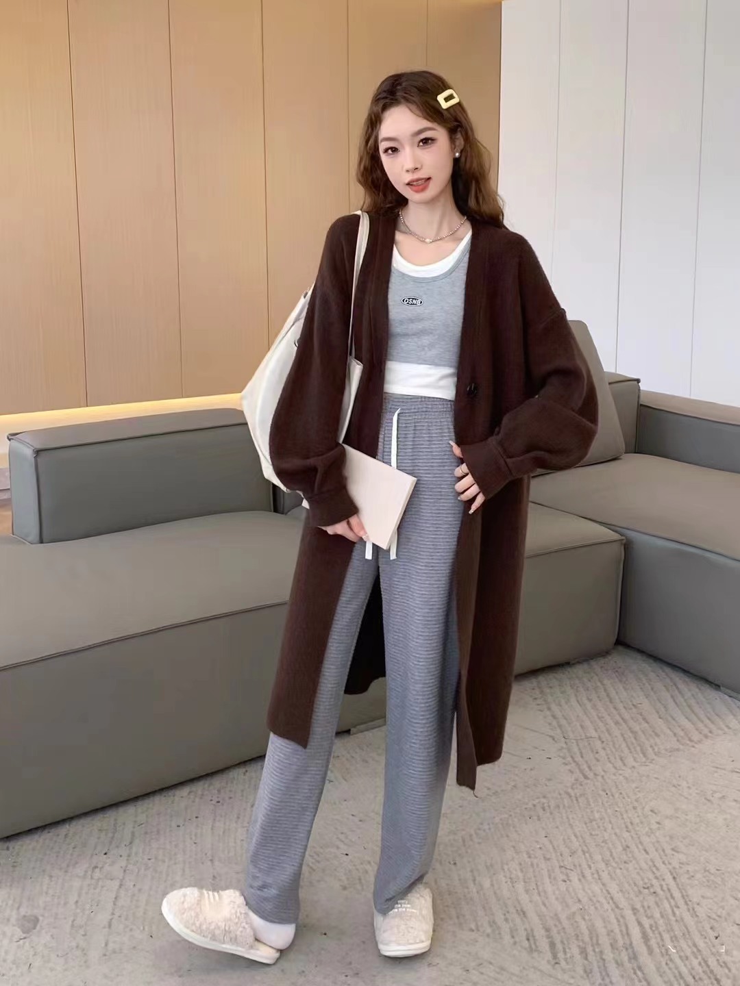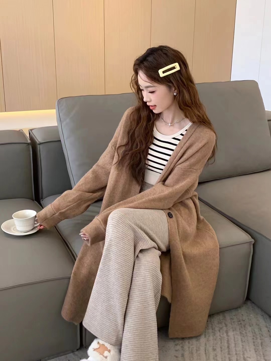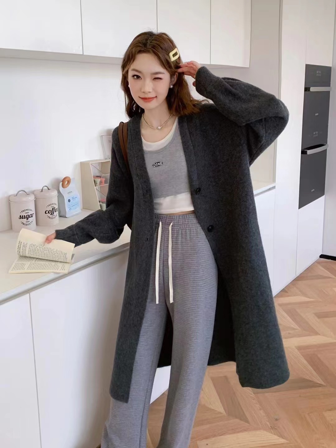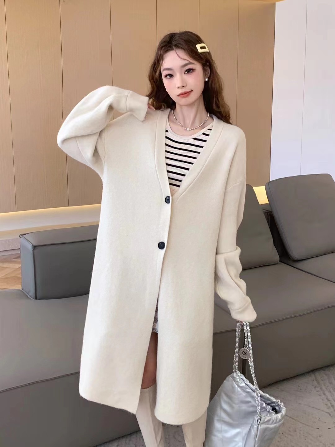 Button Solid Color Long Knitted Cardigan Sweater Coat