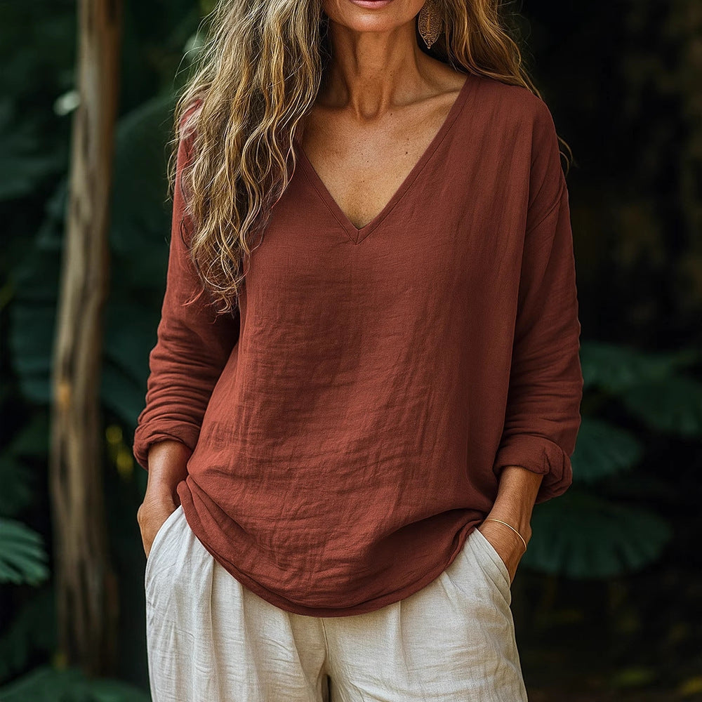 Casual Loose Fashion Cotton And Linen Long-sleeved Top