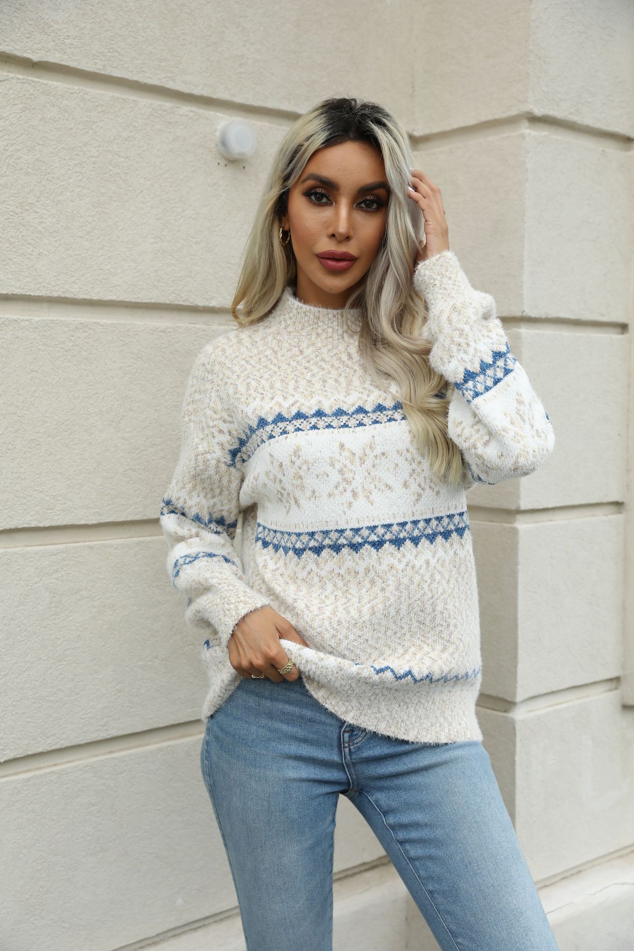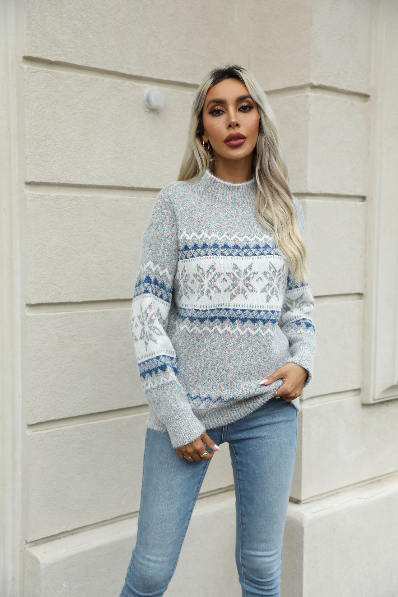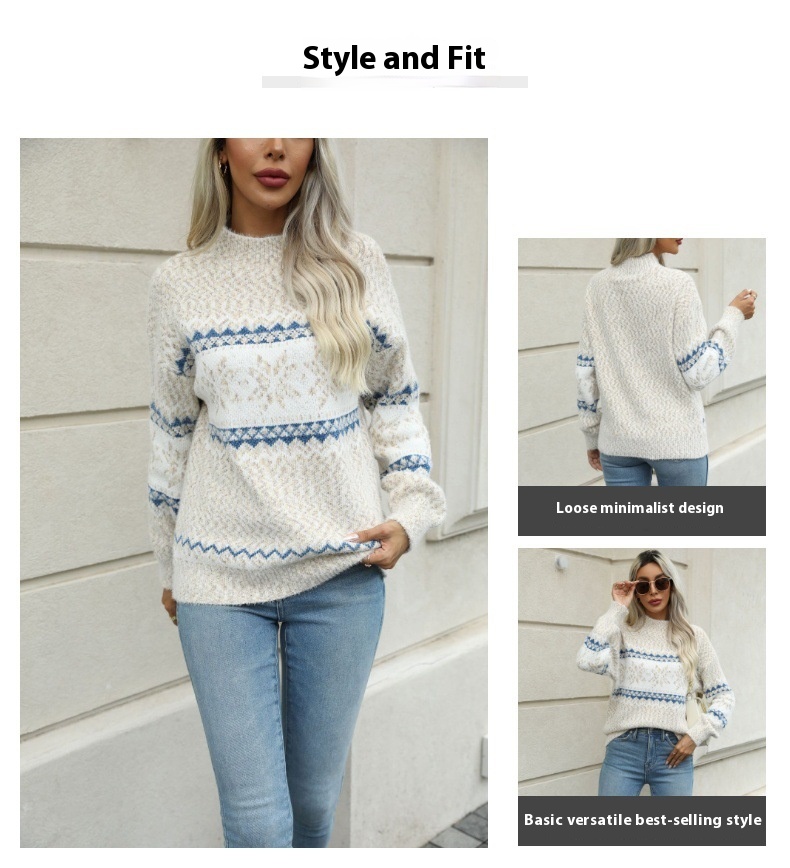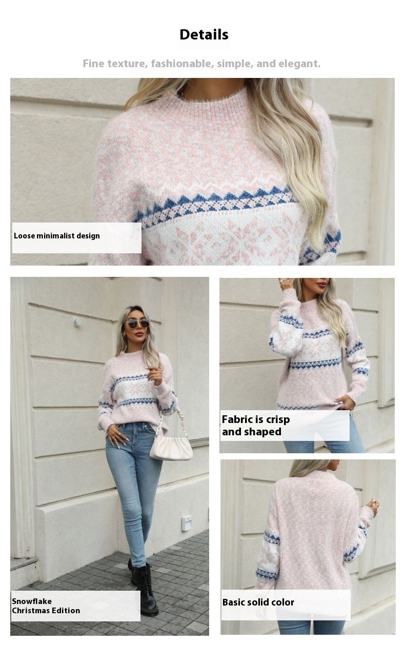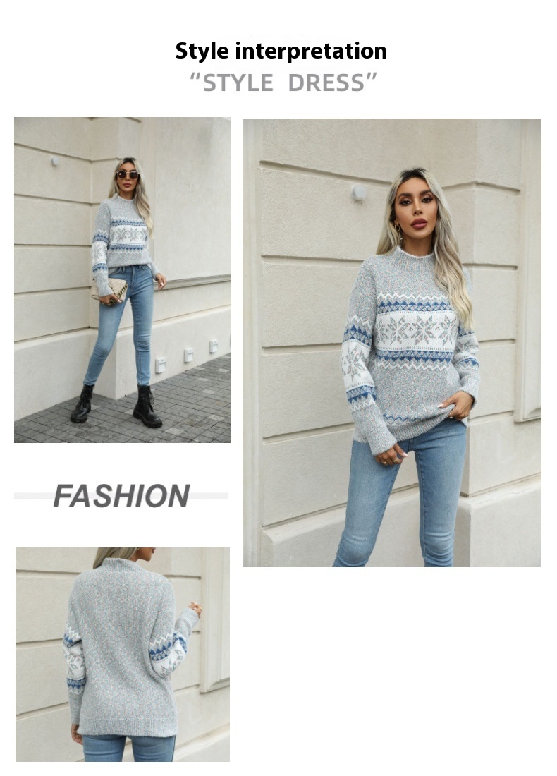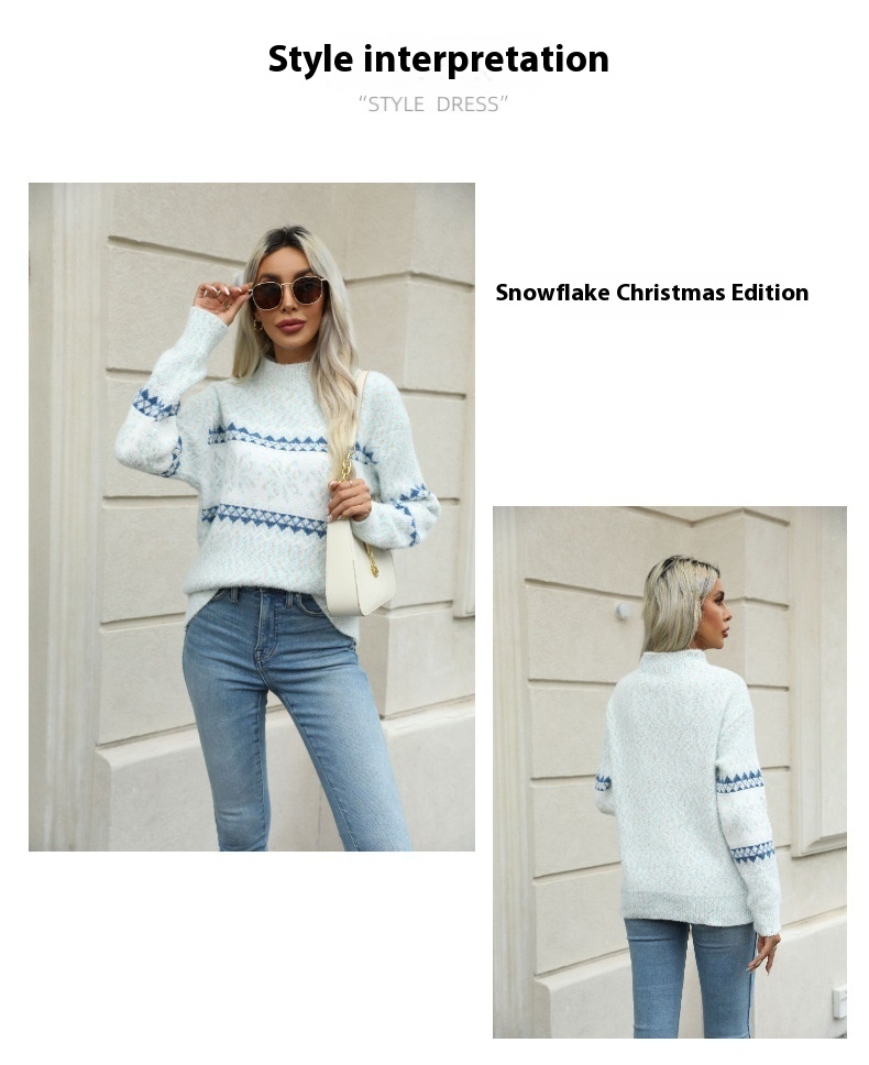 Christmas Half Turtleneck Snowflake Sweater For Women