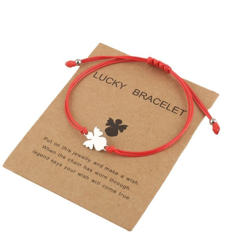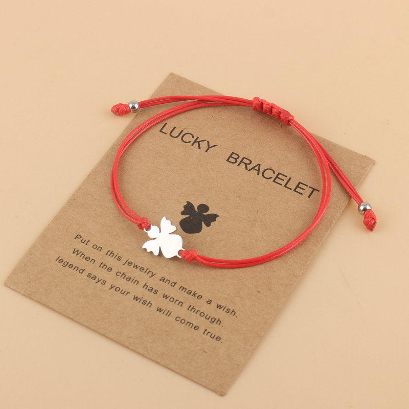 Couple Woven Adjustable Wax Line Stainless Steel Angel Bracelet