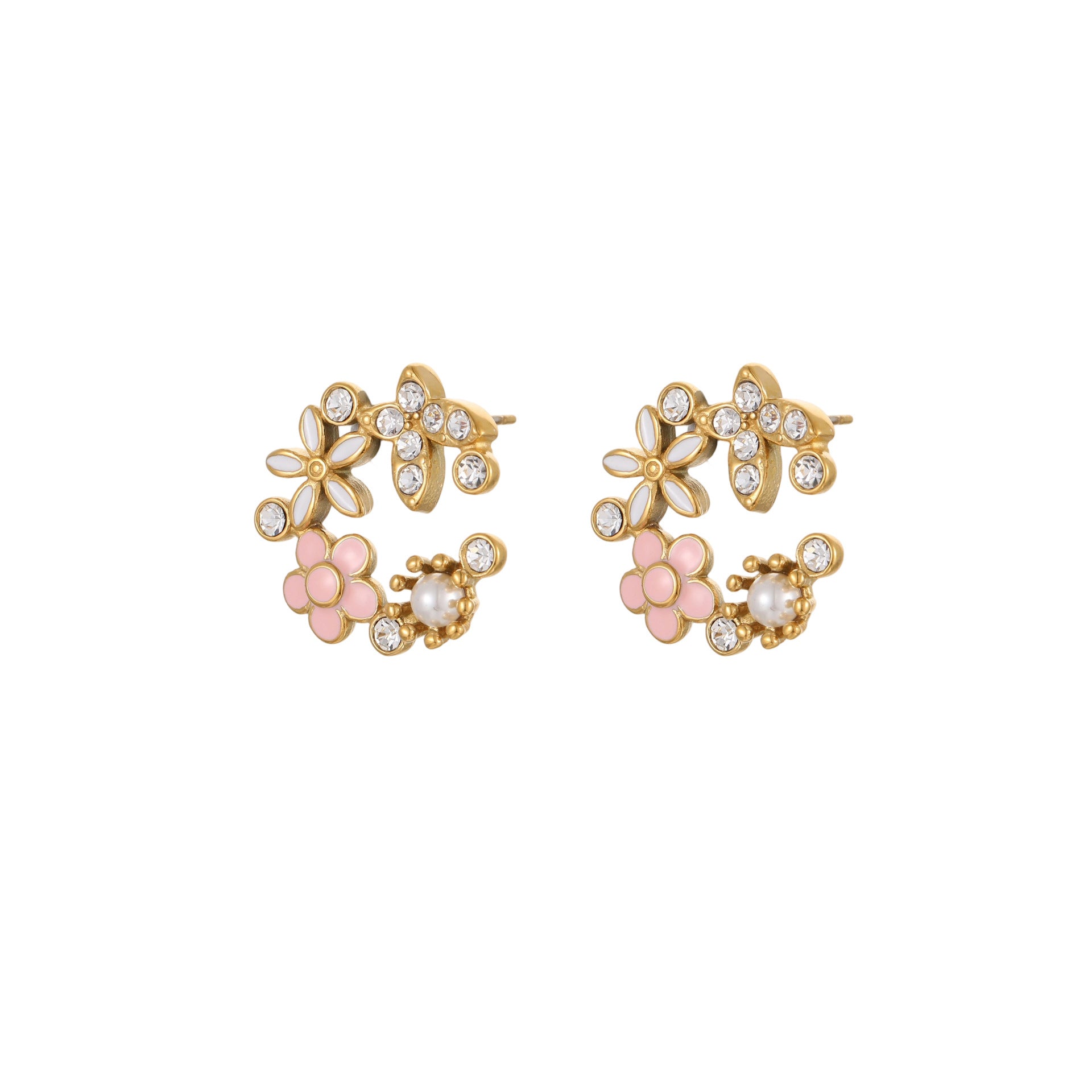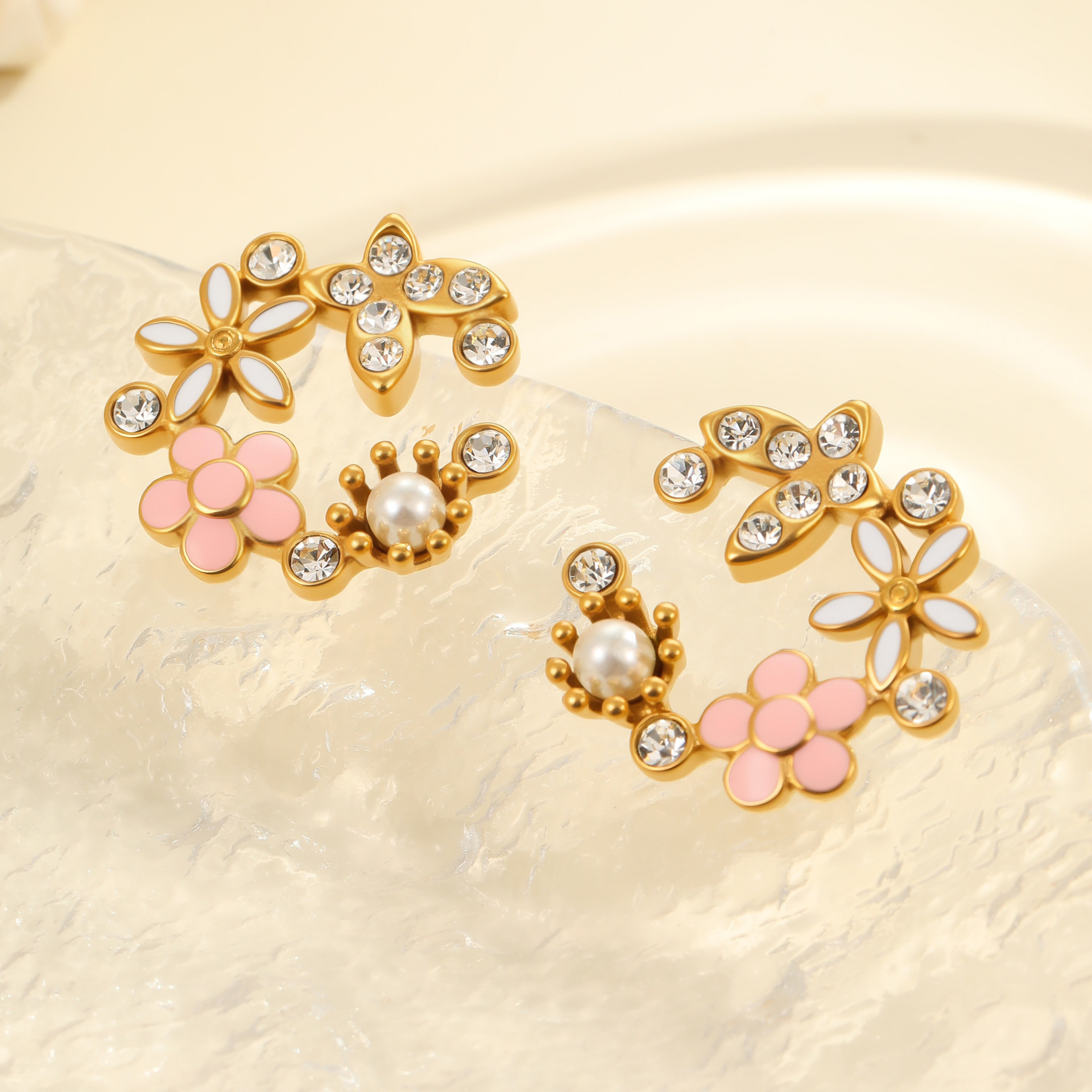 Diamond Colorful Oil Necklace Petal Stud Earrings