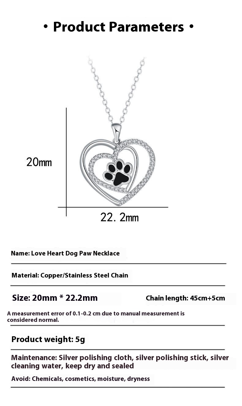 Color: Heart dog's paw necklace