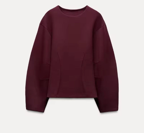 Fashion Long Sleeve O-neck Pleated Top Wide Leg Pants Women's Suit