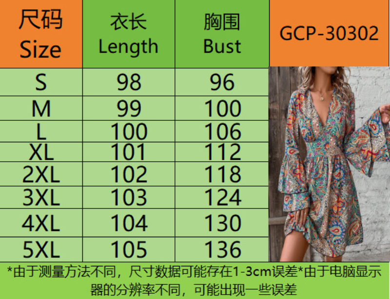 Fashionable And Elegant Women's Paisley Print V-neck Trumpet Sleeve Dress