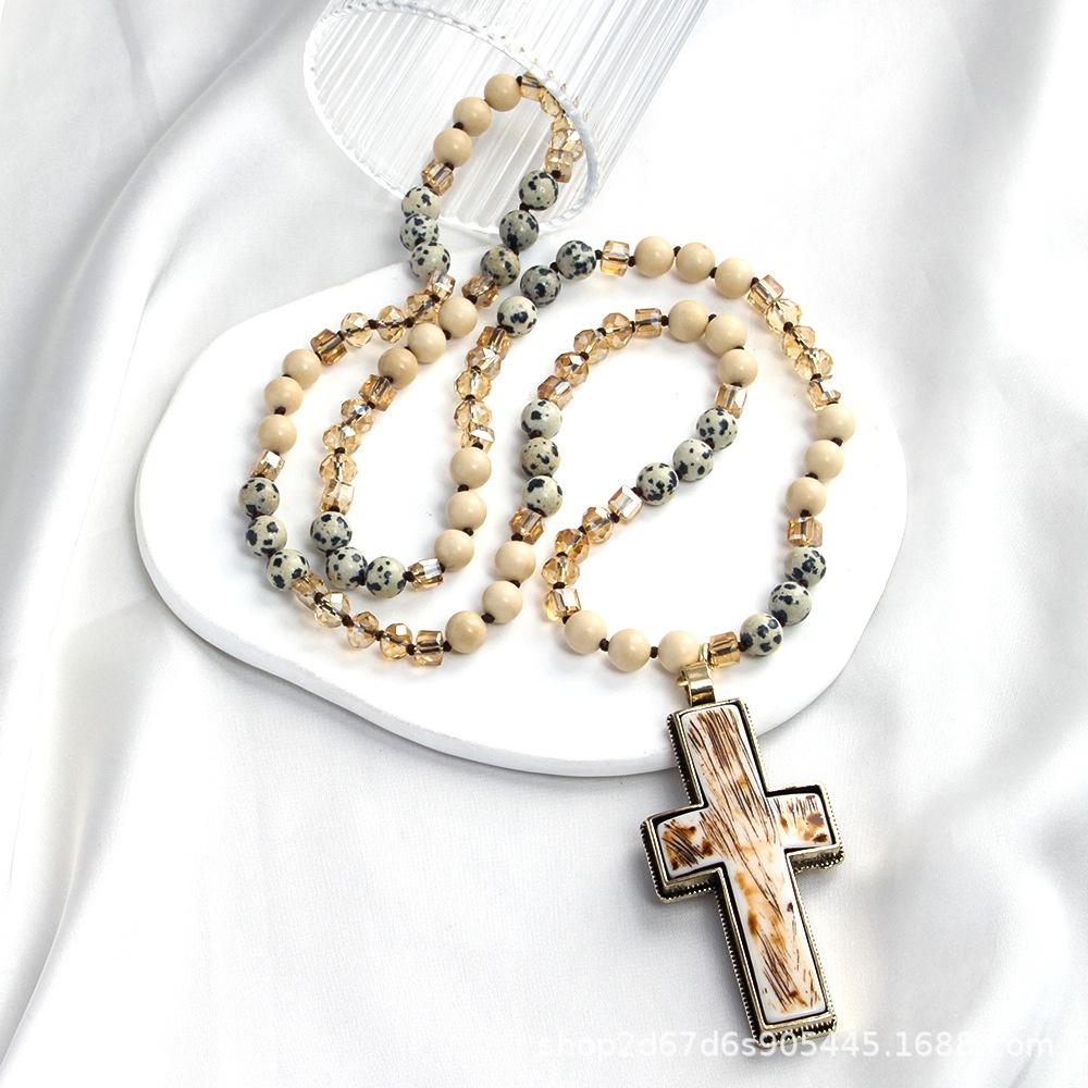Glass Knotted Resin Cross Pendant Necklace Sweater Chain