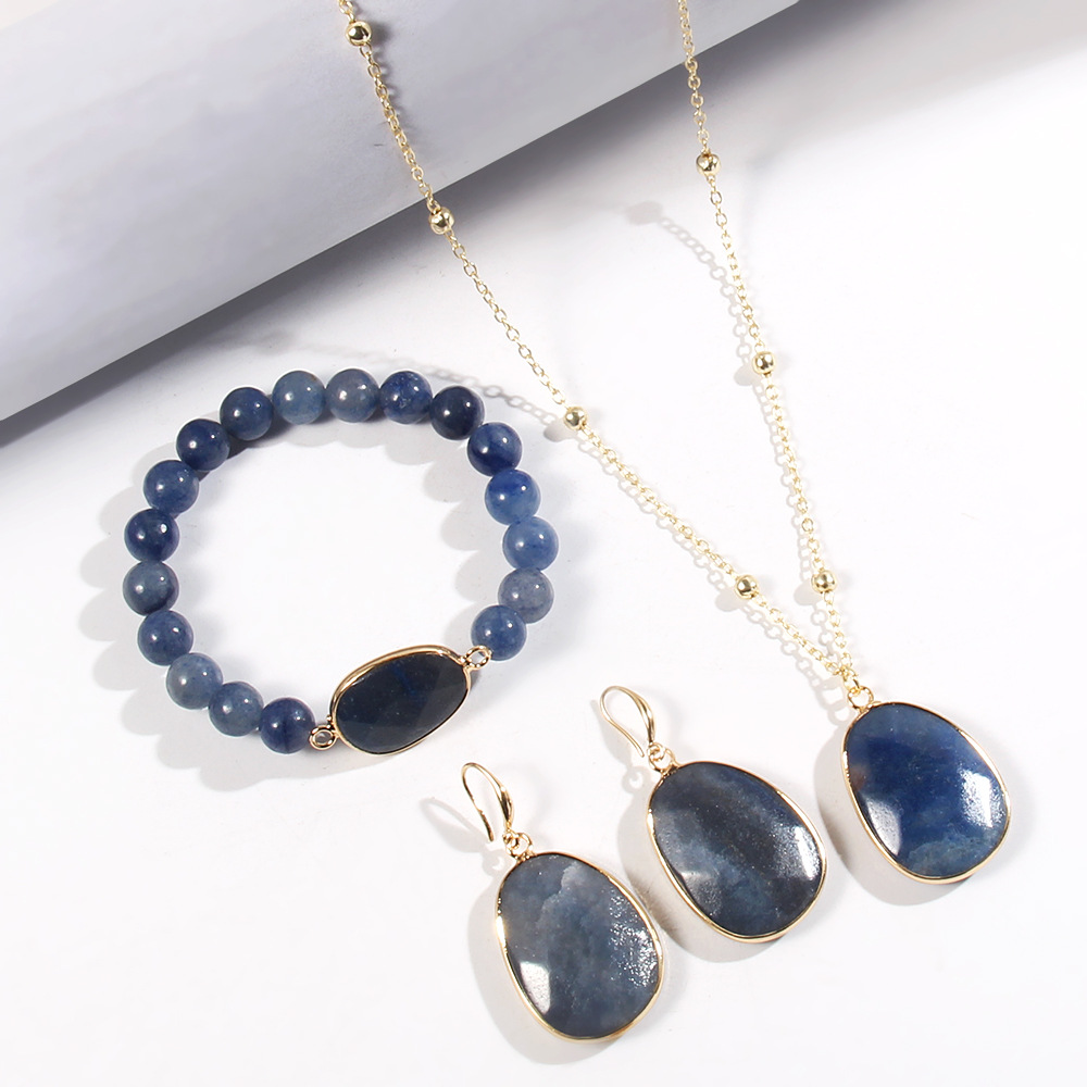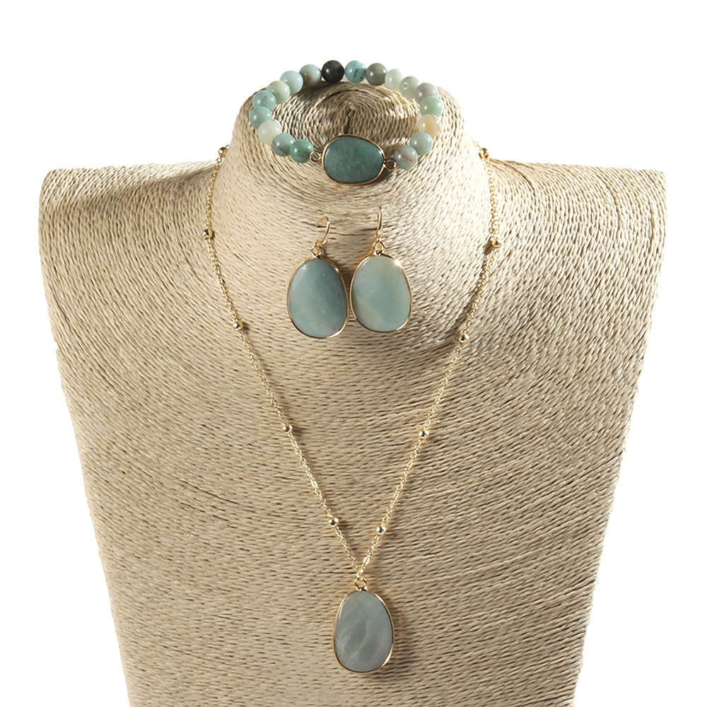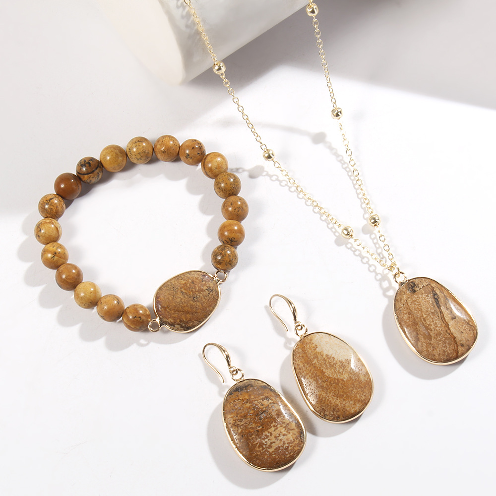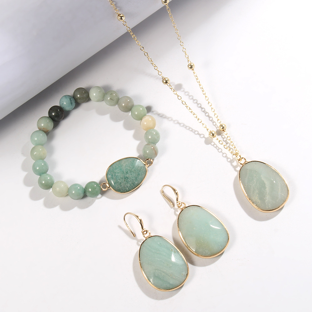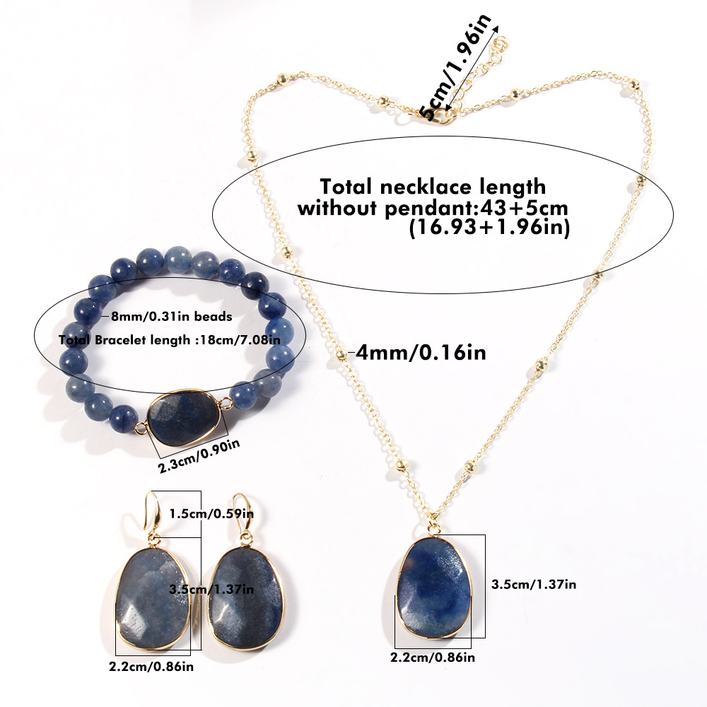 Gold Chain Necklace Natural Stone Bracelet Earrings Women's Jewelry Set