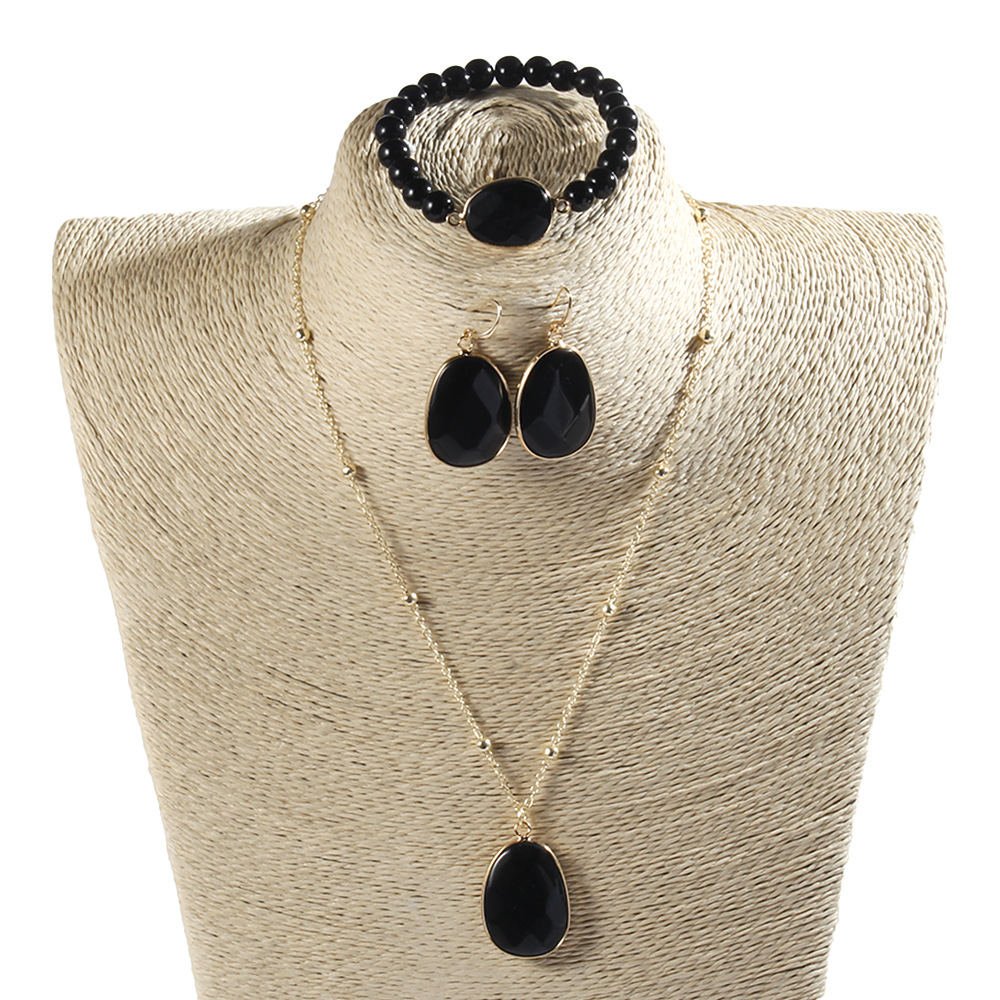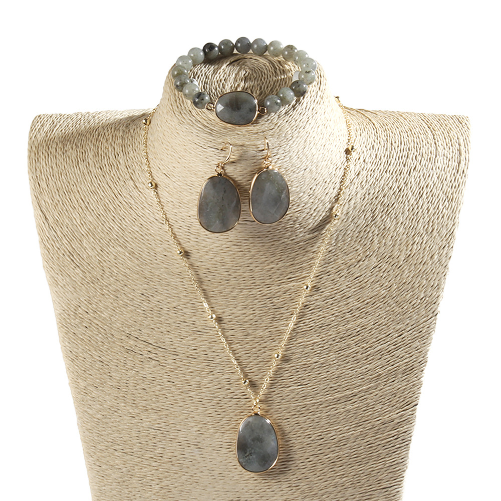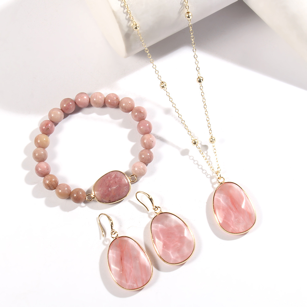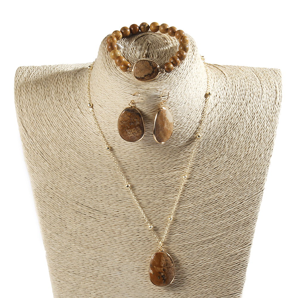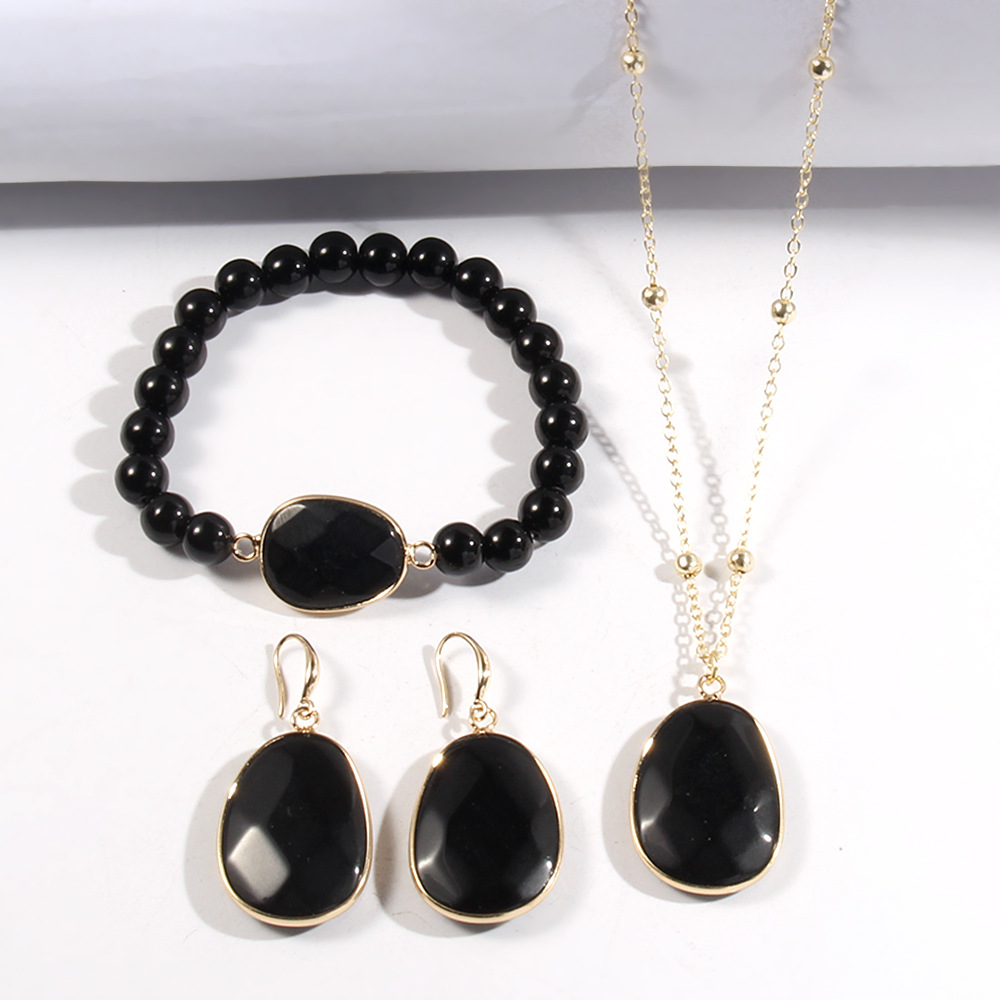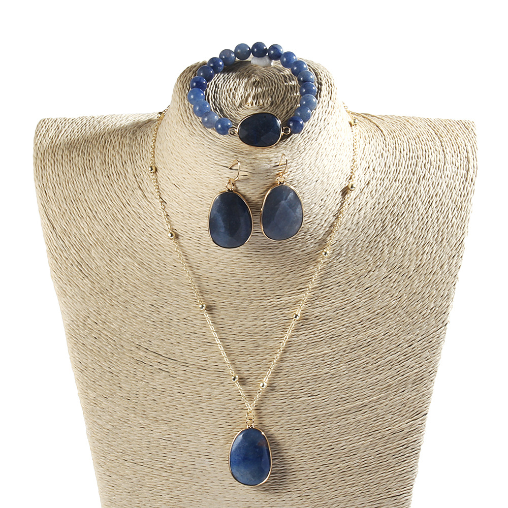 Gold Chain Necklace Natural Stone Bracelet Earrings Women's Jewelry Set