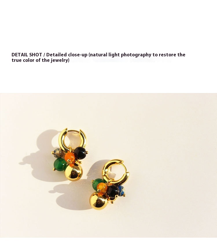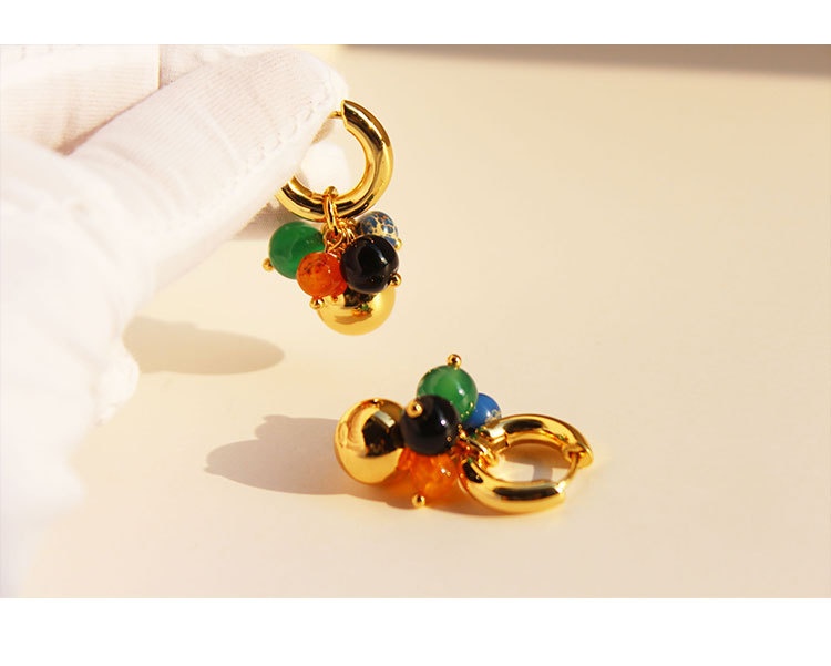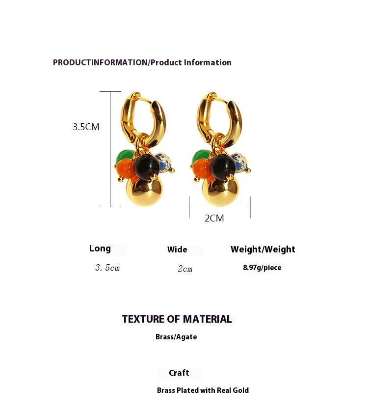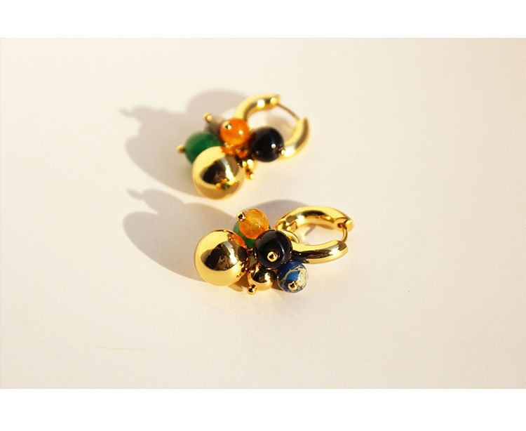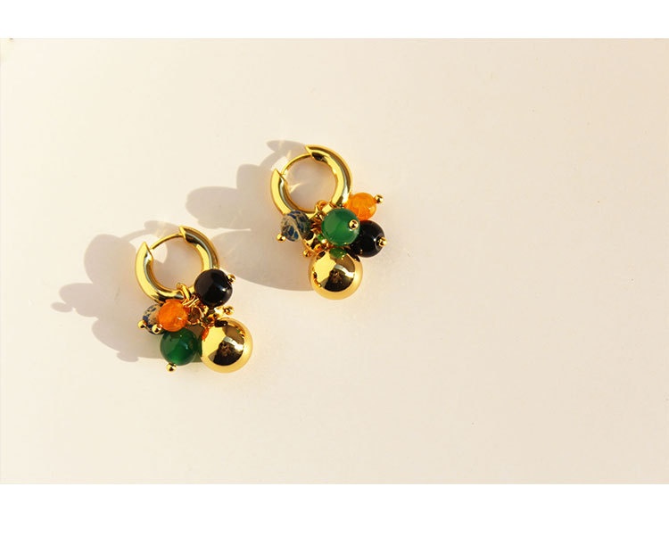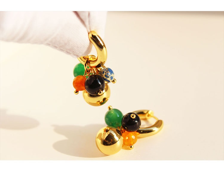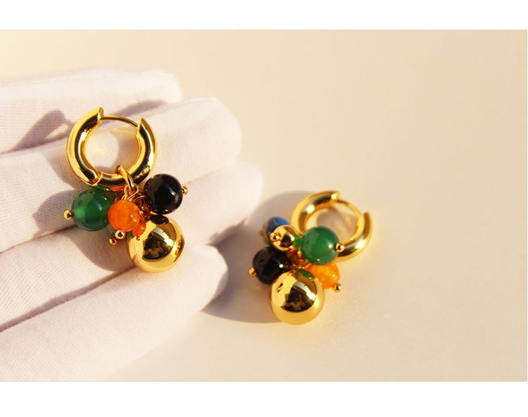 High-grade Green Black Yellow Agate Contrast Color Gold Ball Earrings