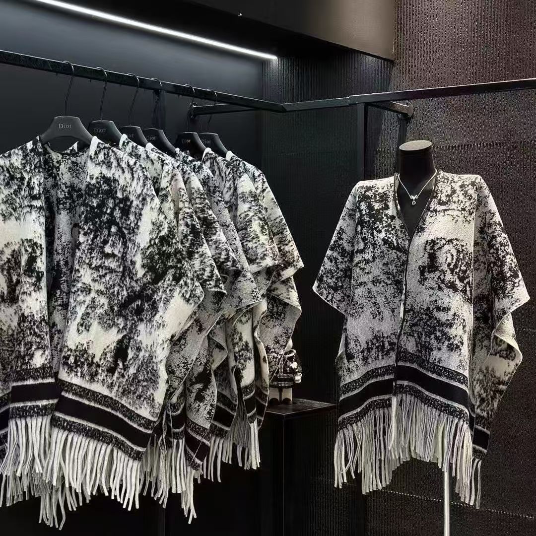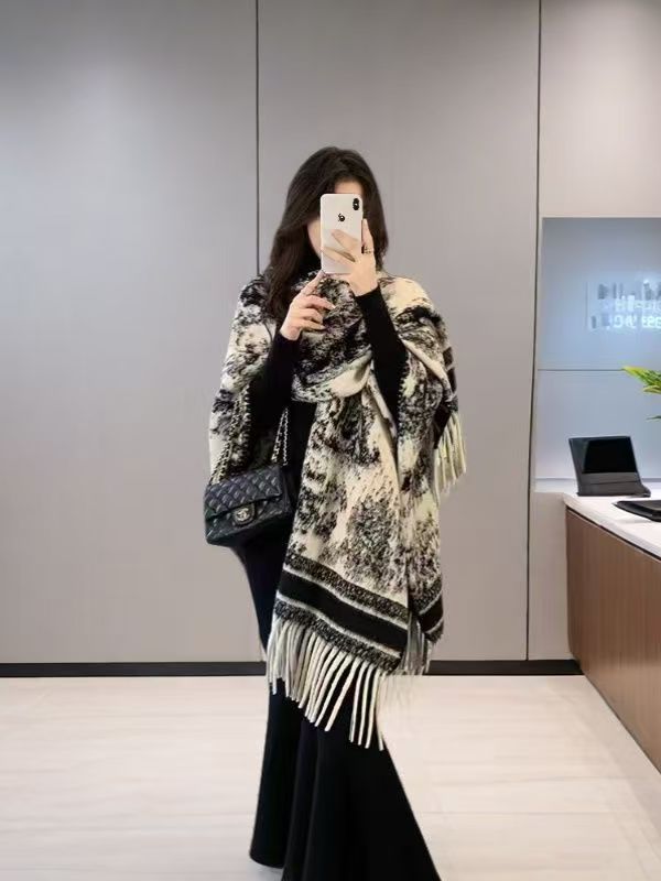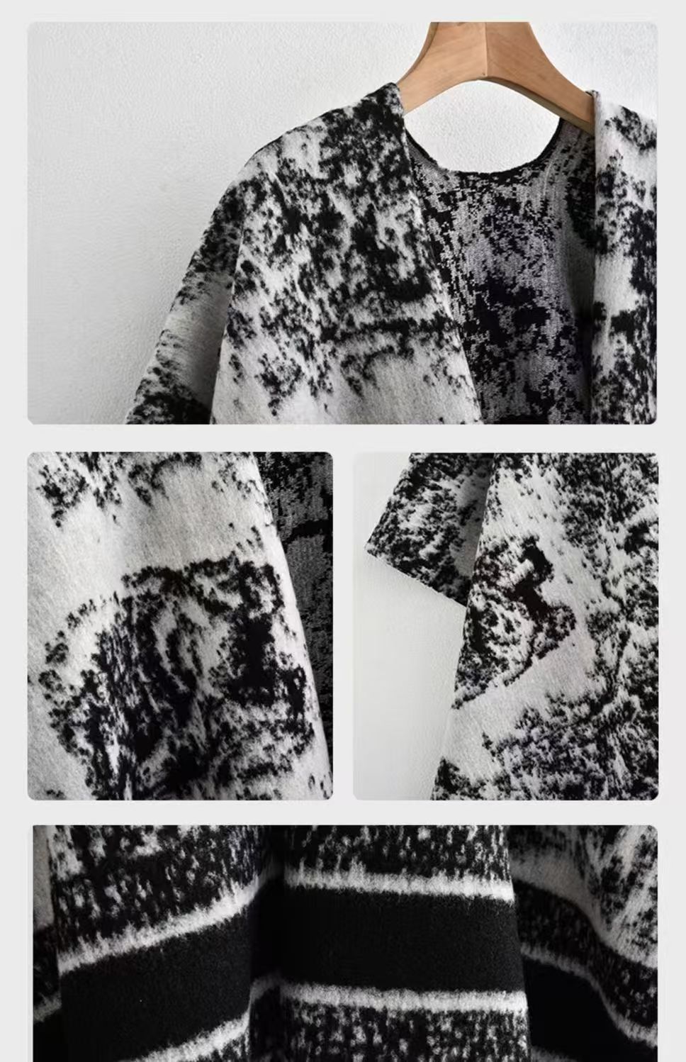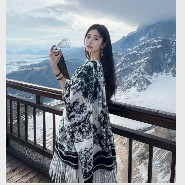 Ink Painting Double-sided Shawl Outer Match Women's Autumn And Winter Retro High Sense