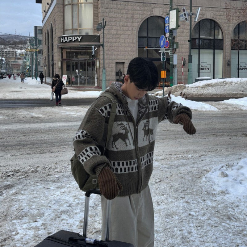 Jacquard Christmas Zipper Idle Style Cardigan Knitted Coat