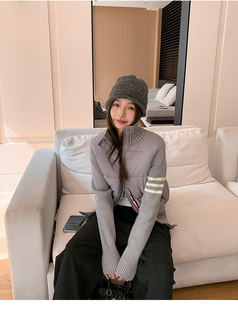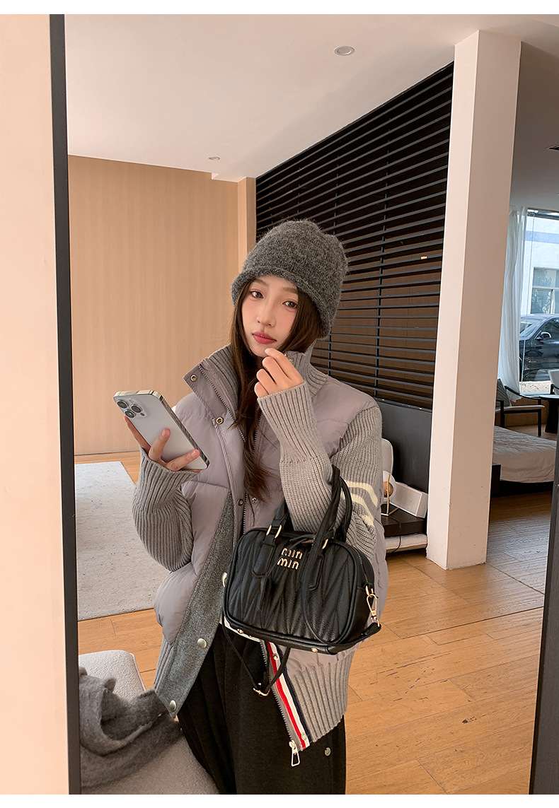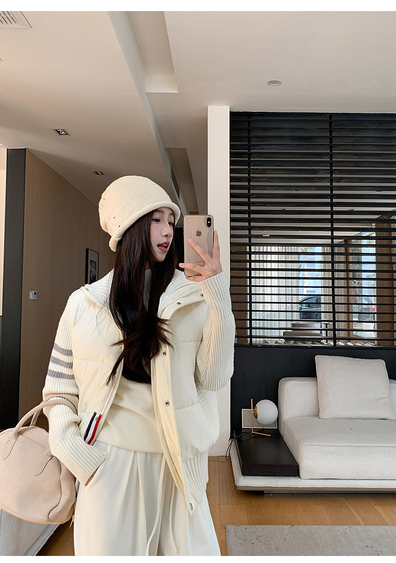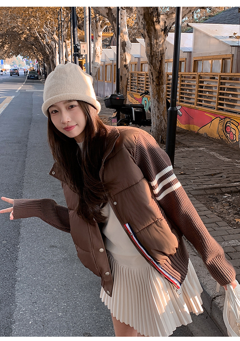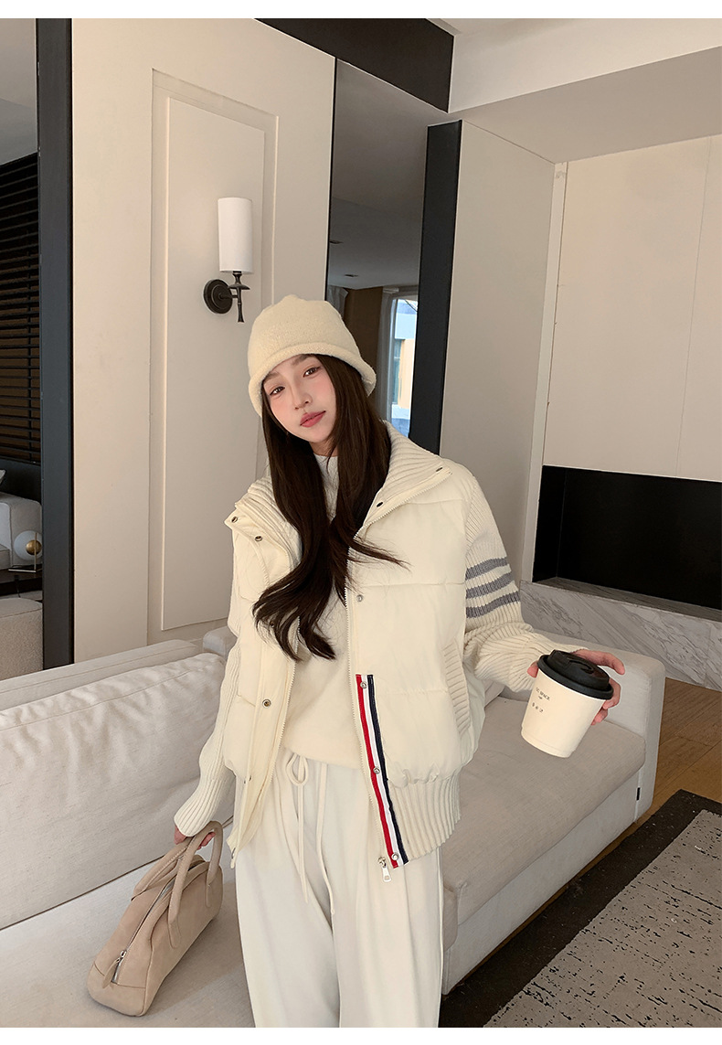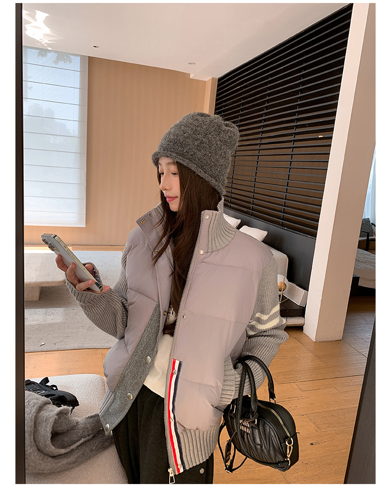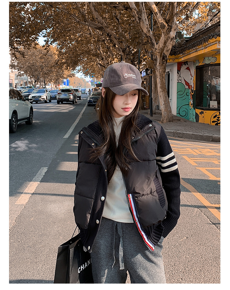 Knitted Stitching Color Contrast Casual Cotton-padded Jacket