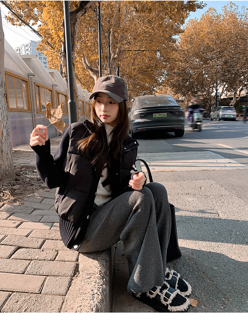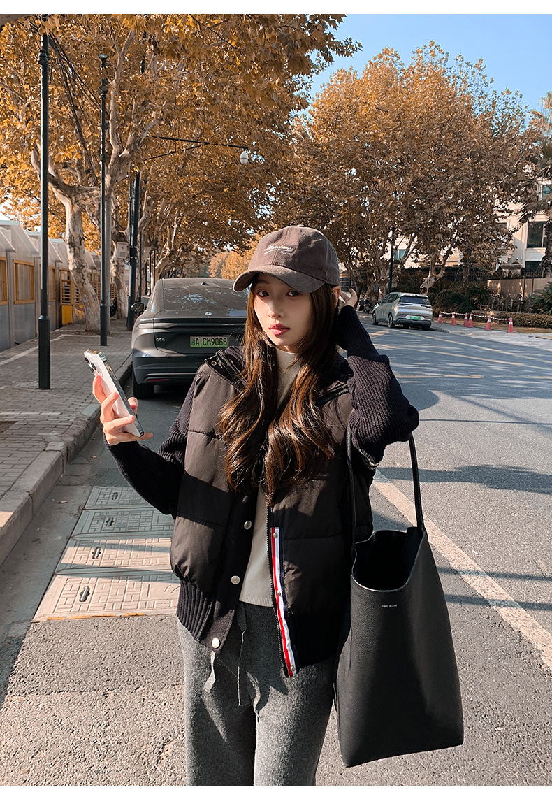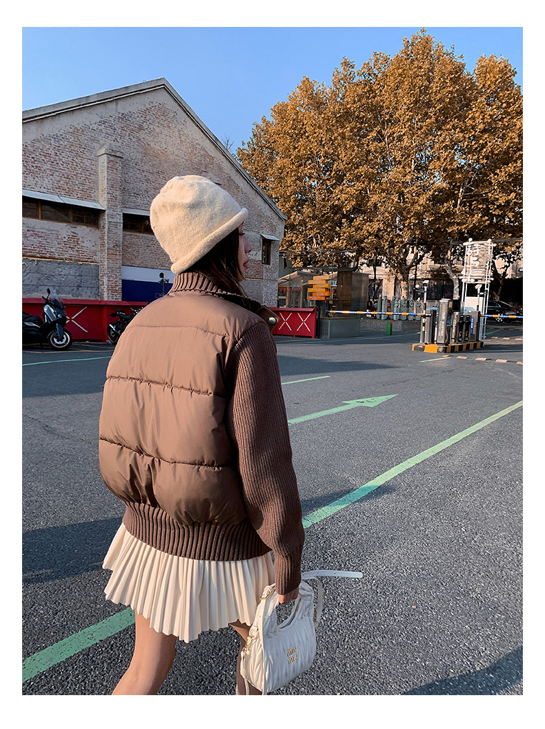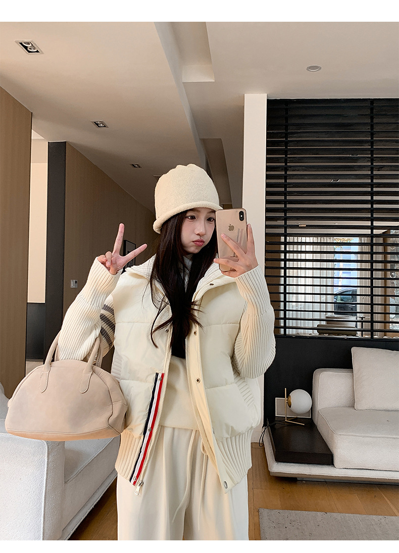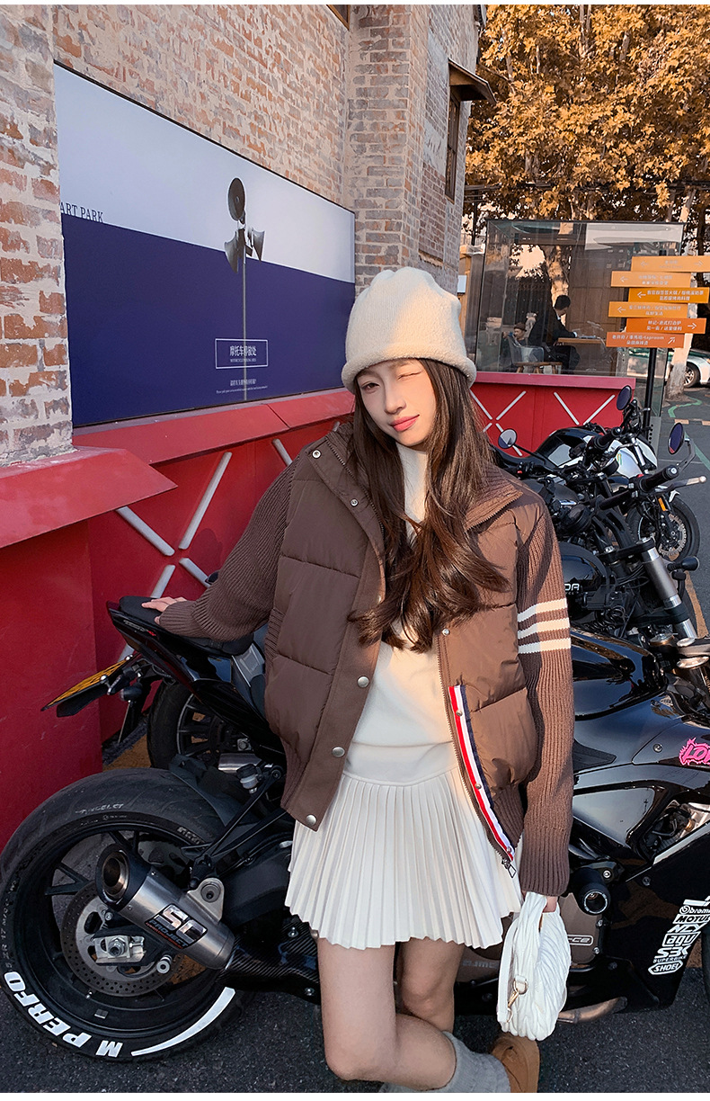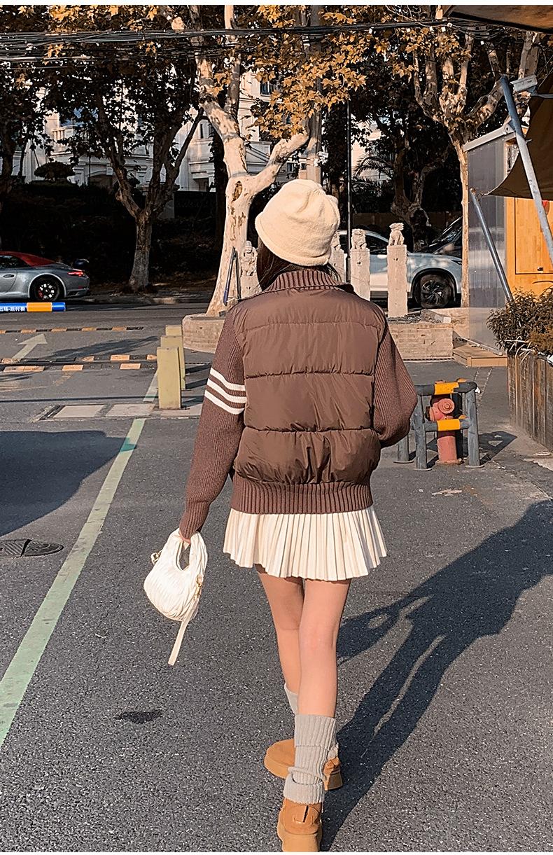 Knitted Stitching Color Contrast Casual Cotton-padded Jacket
