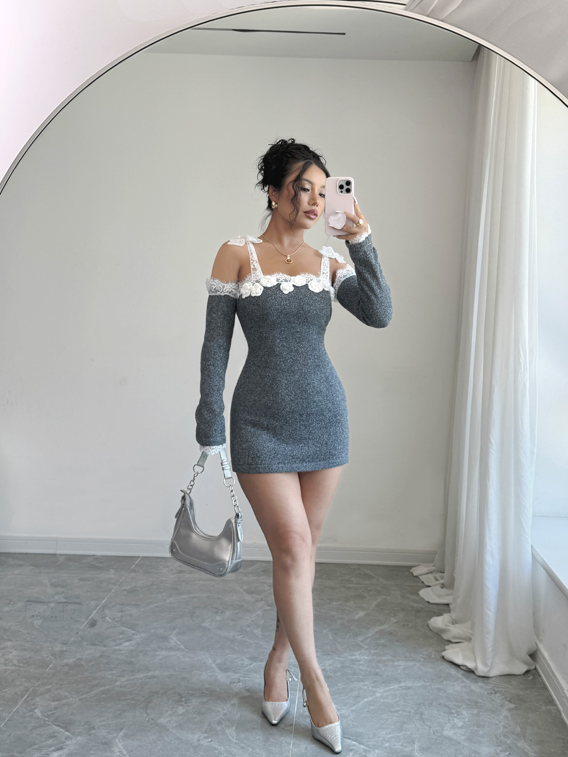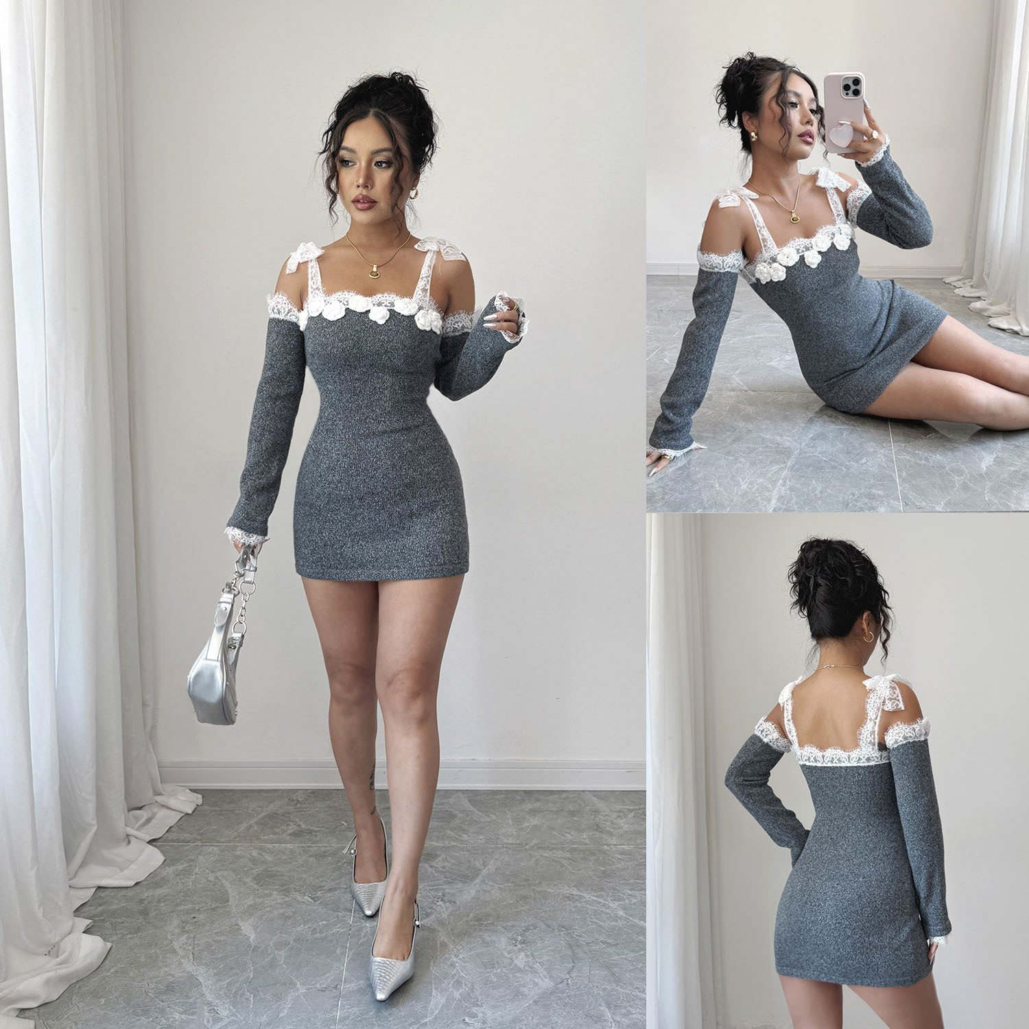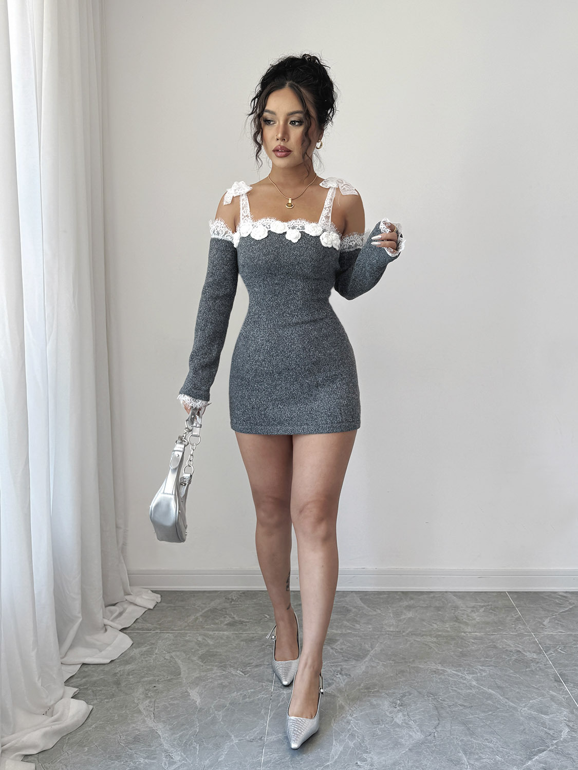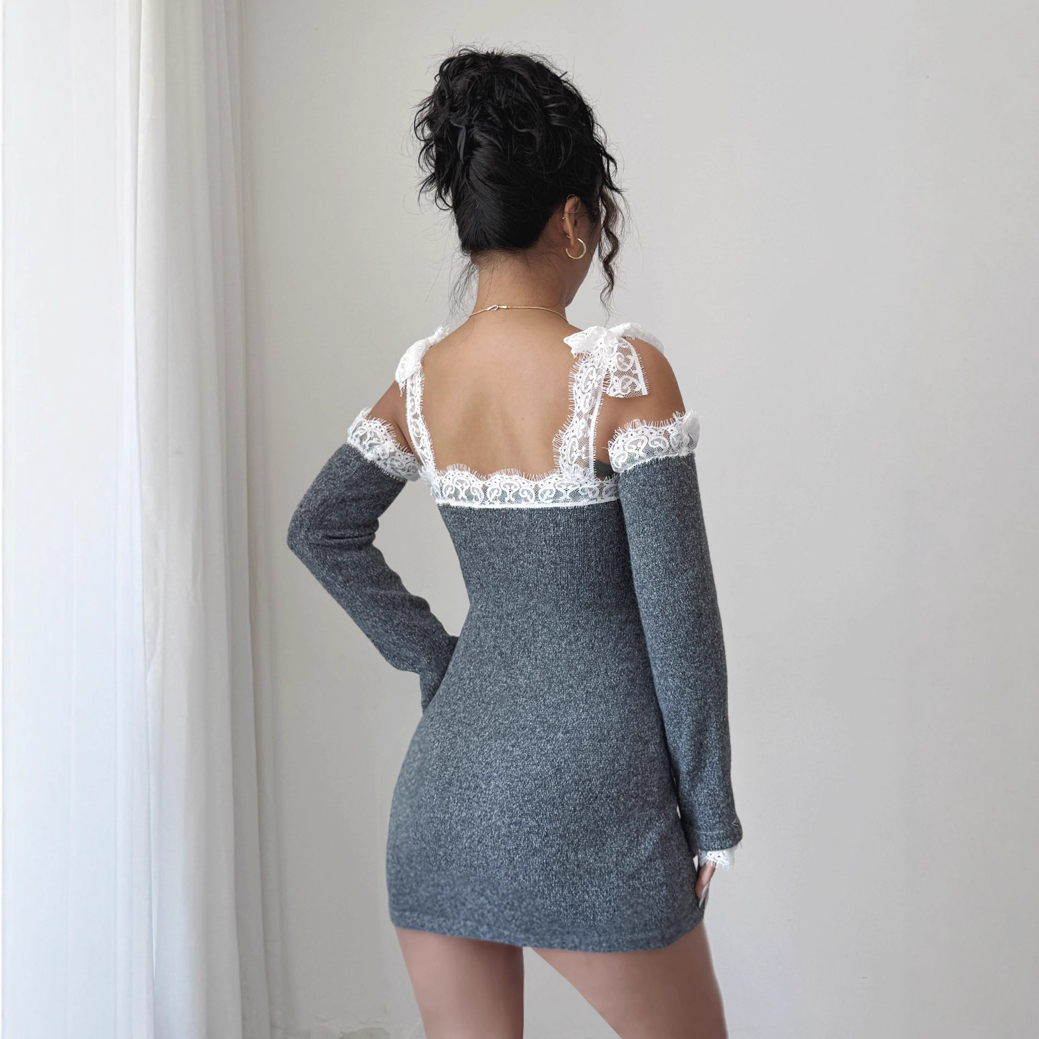 Lace Off-shoulder Oversleeves Separated Type Knitted Dress