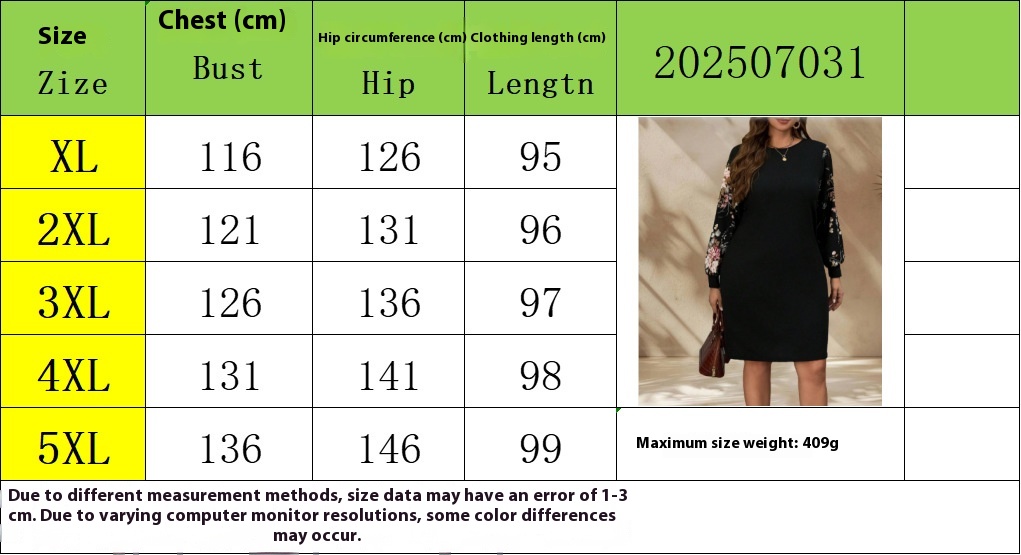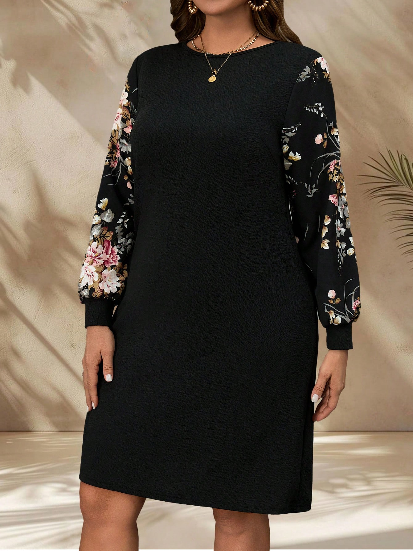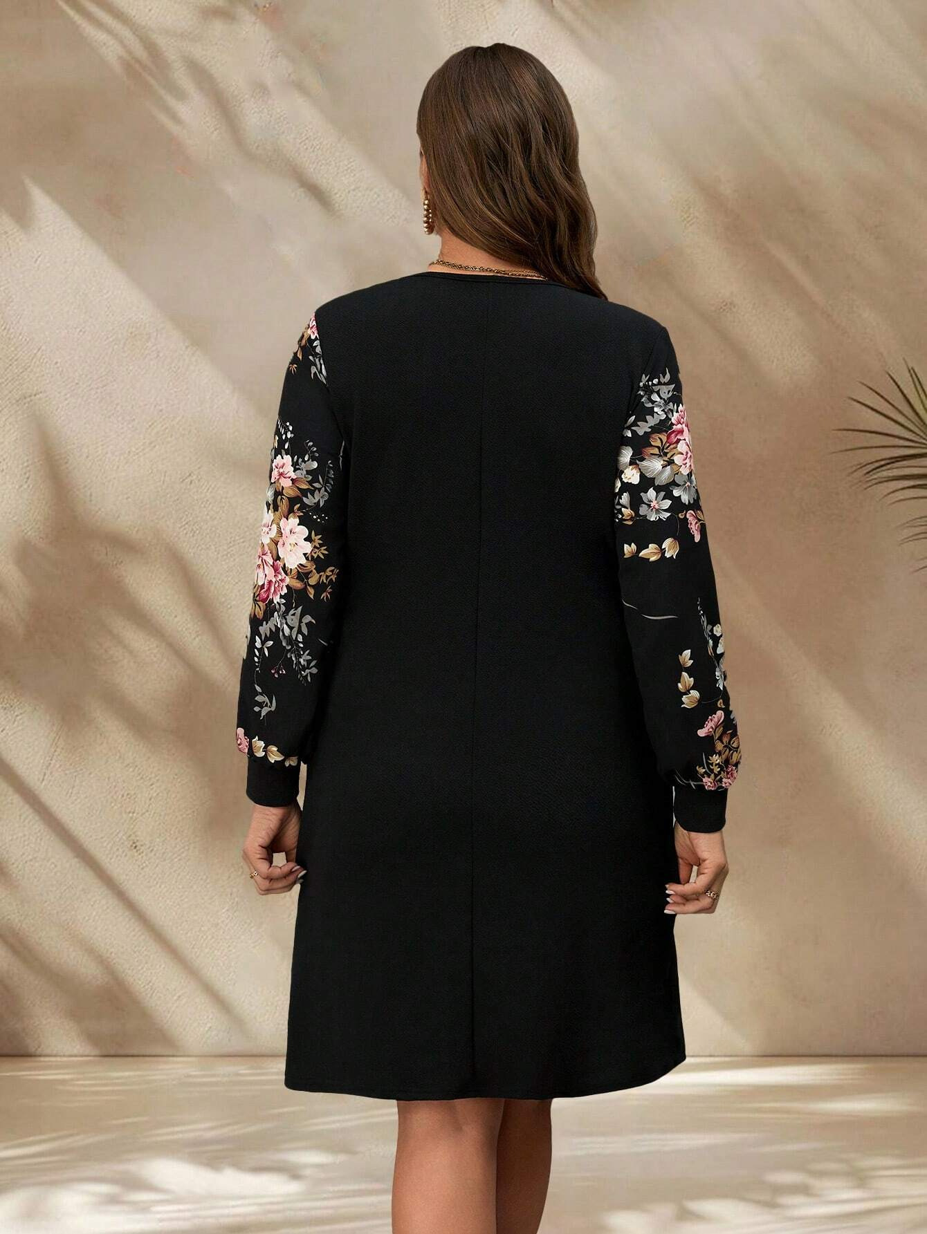 Large Size Round Neck Long Sleeve Printed Casual Women's Short Skirt
