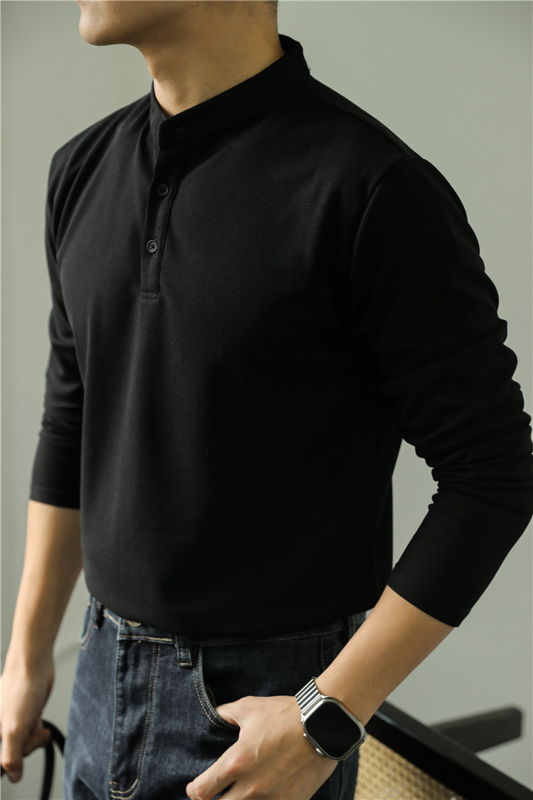 Long Sleeve Polo Shirt Simple Solid Color Fitness Men's Base