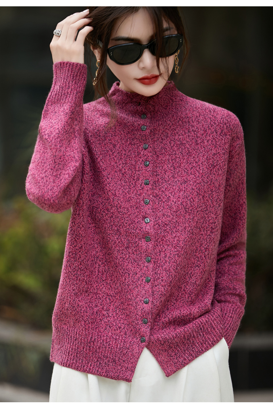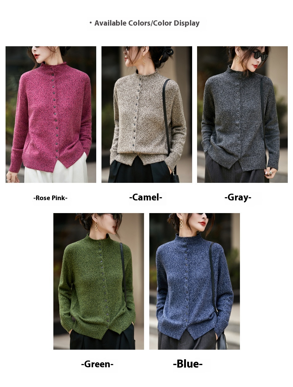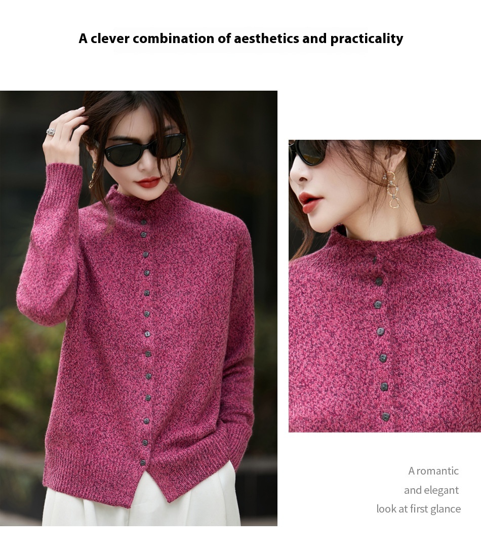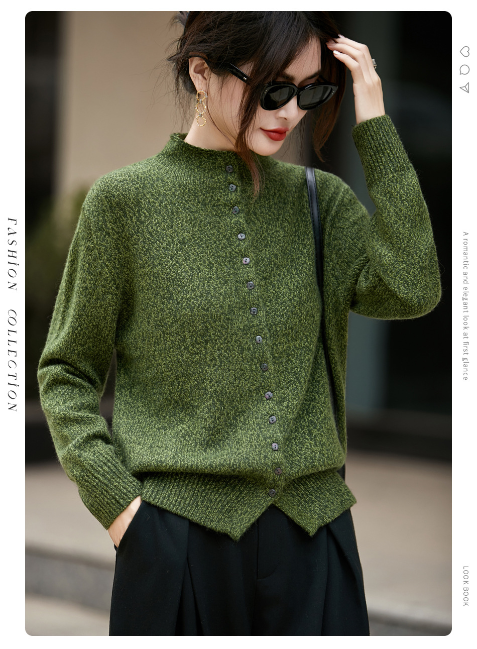 Machine Washable Half Turtleneck Arabesquitic Fabric Knitted Cardigan