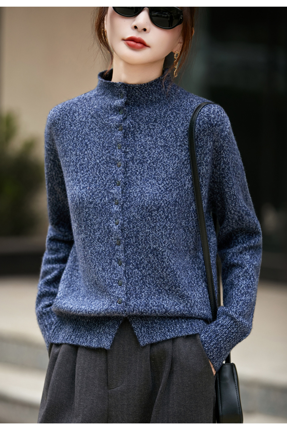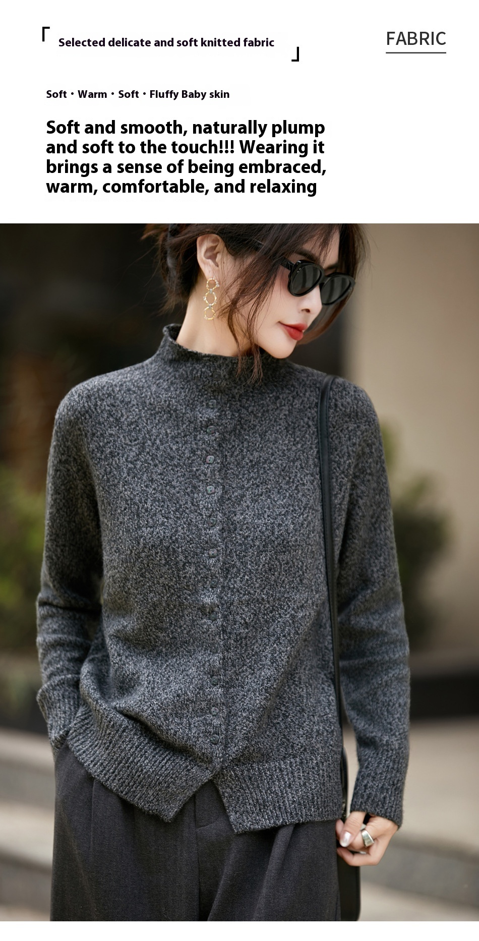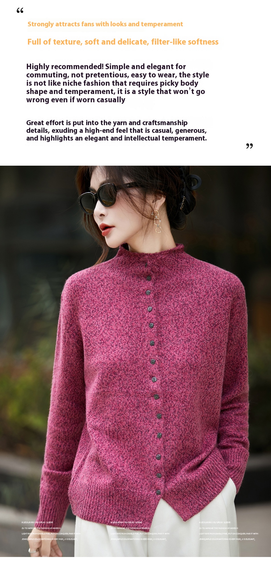 Machine Washable Half Turtleneck Arabesquitic Fabric Knitted Cardigan