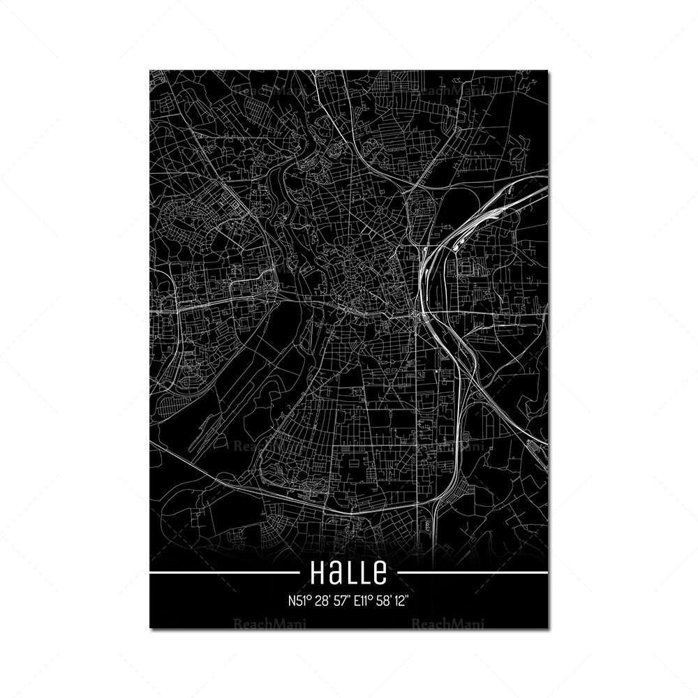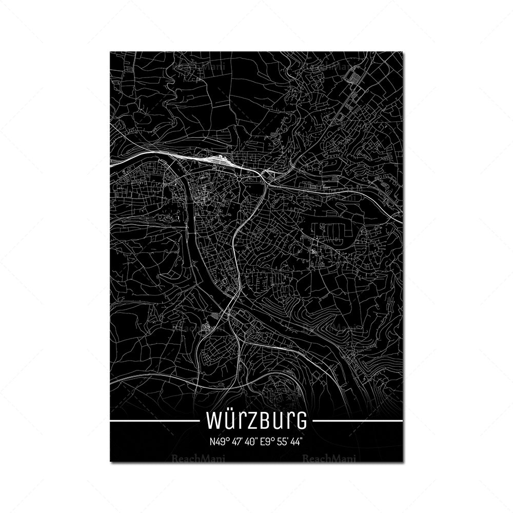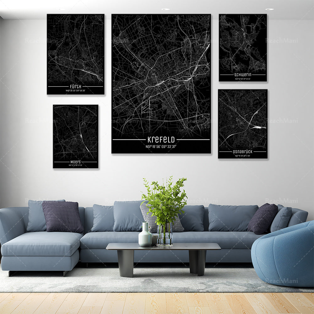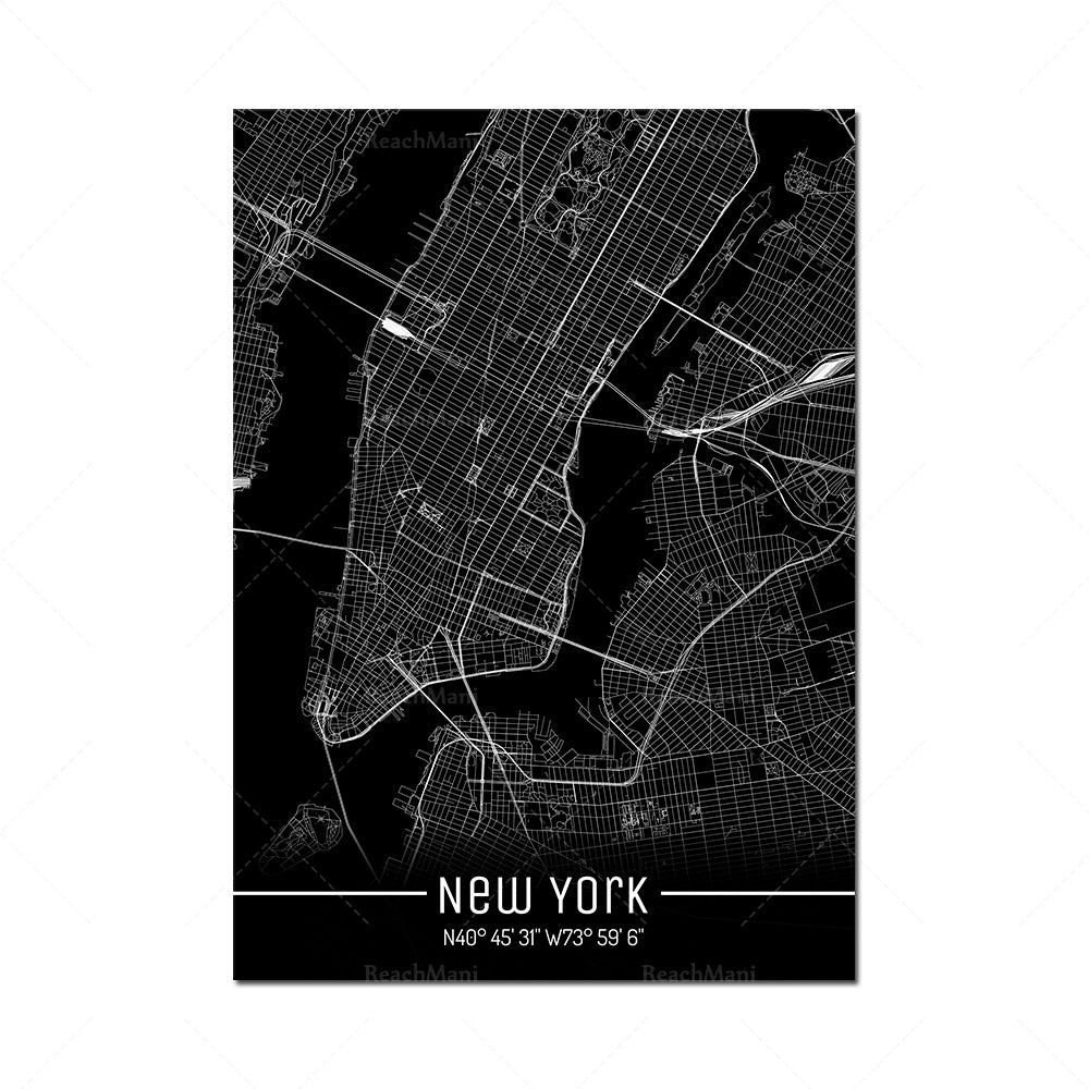 Map Black Line Poster Canvas Painting Home Decor Wall Art