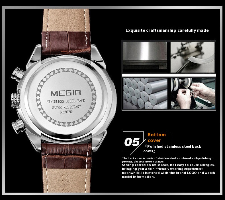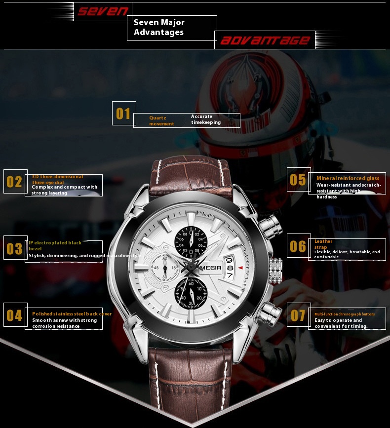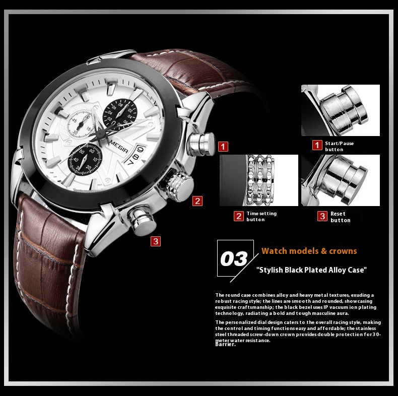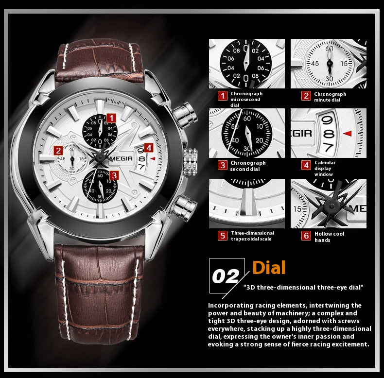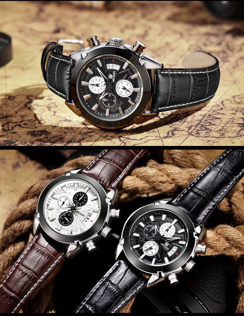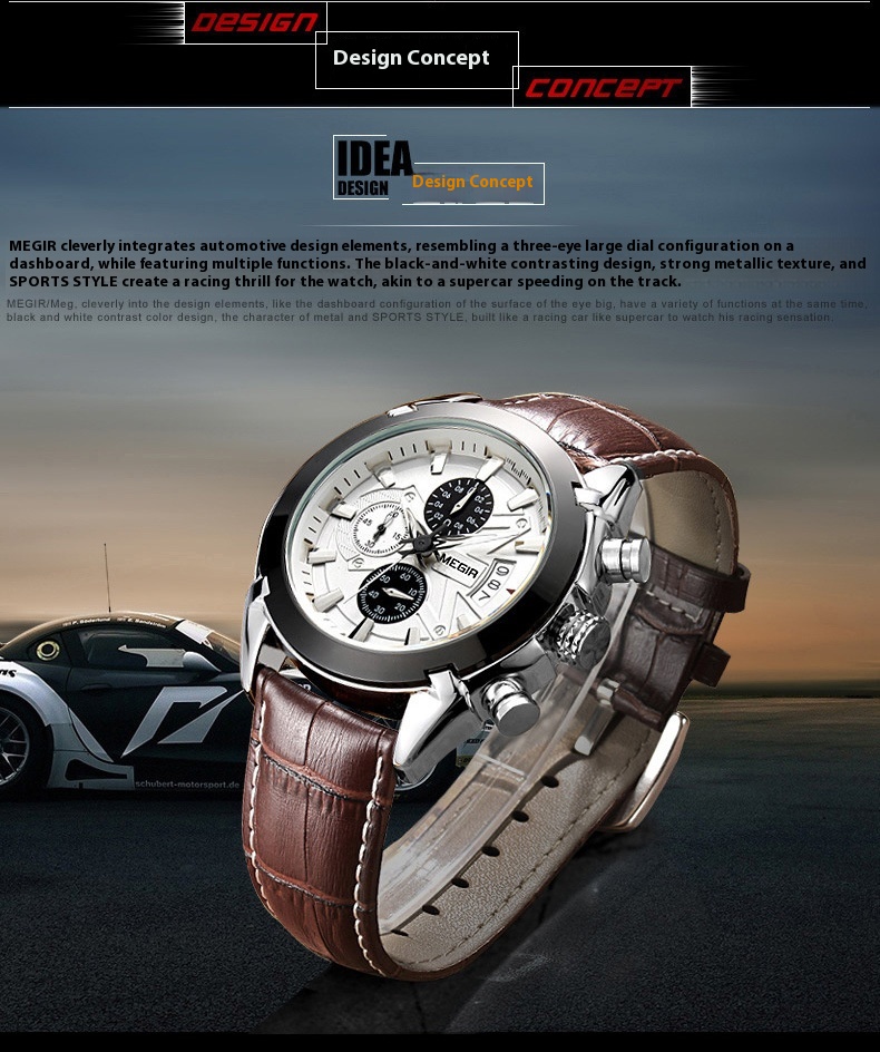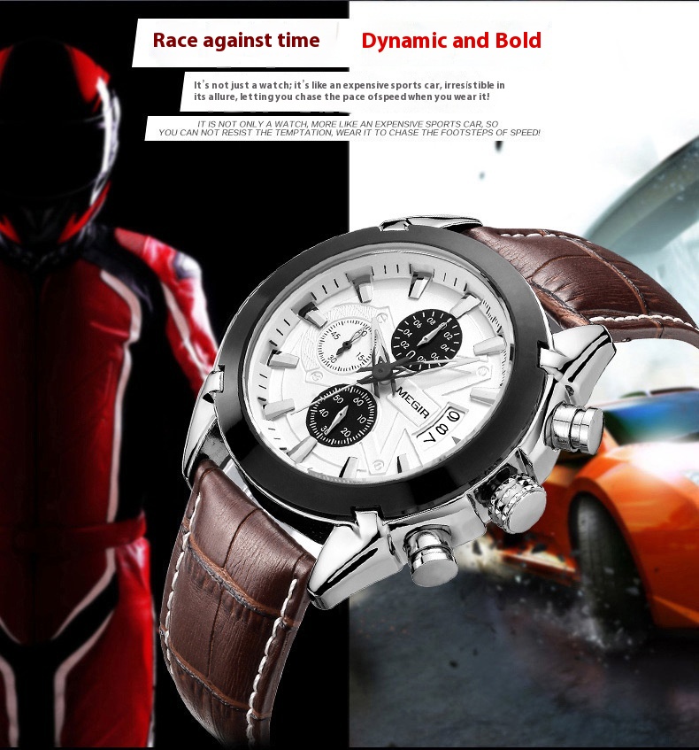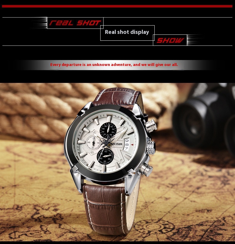 Multifunctional Timing Quartz Three Eyes And Six Needles Waterproof Luminous
