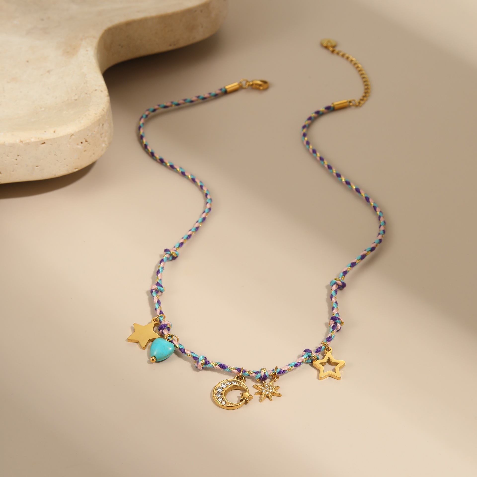 Color: NMSN-J618-1 purple moon necklace, NMSN-J618-2 pink lock necklace, NMSN-J618-3 blue XINGX necklace, NMSB-J618-4 Purple Moon bracelet, NMSB-J618-5 pink lock bracelet, NMSB-J618-6 blue XINGX bracelet