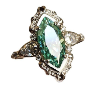 Ornament Alloy Inlaid Green Horse Eye Zircon Ring Women's Diamond Ring