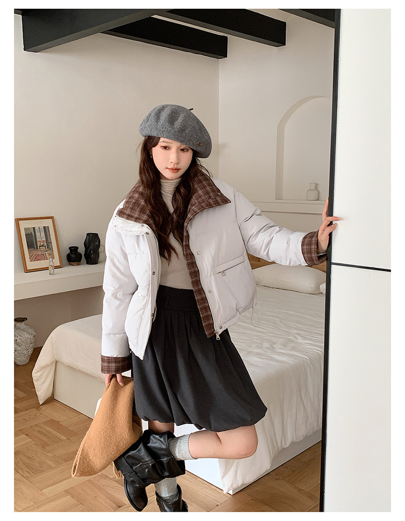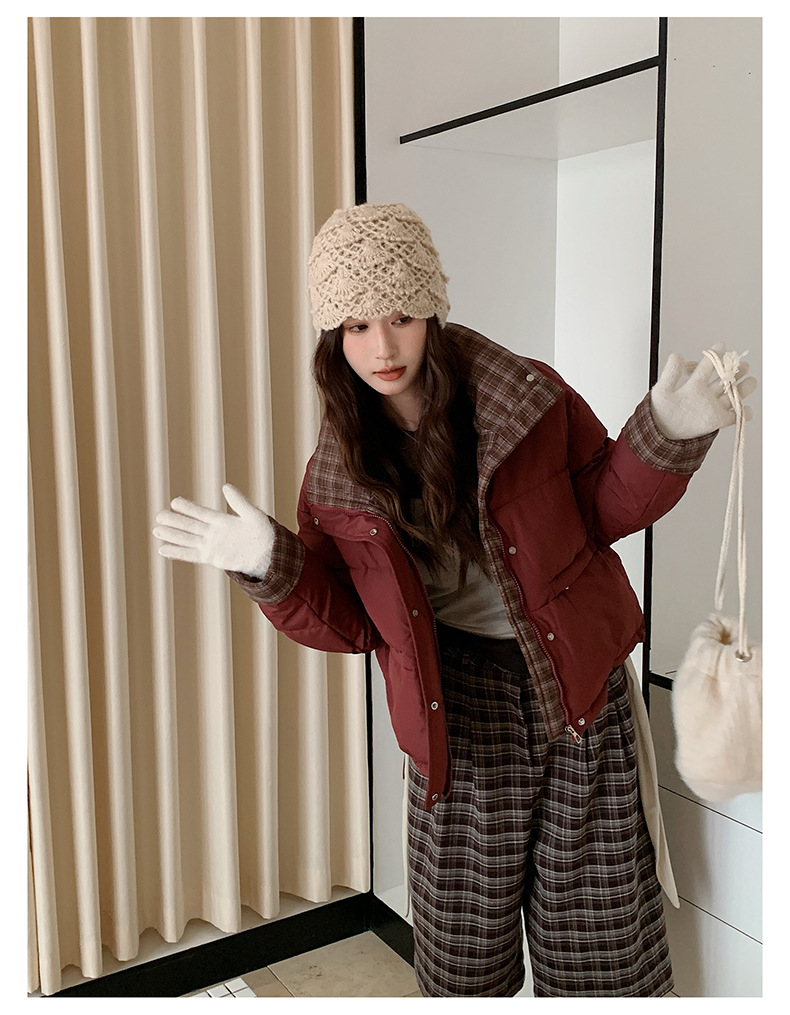 Patchwork Loose Casual Stand Collar Temperament Cotton-padded Jacket