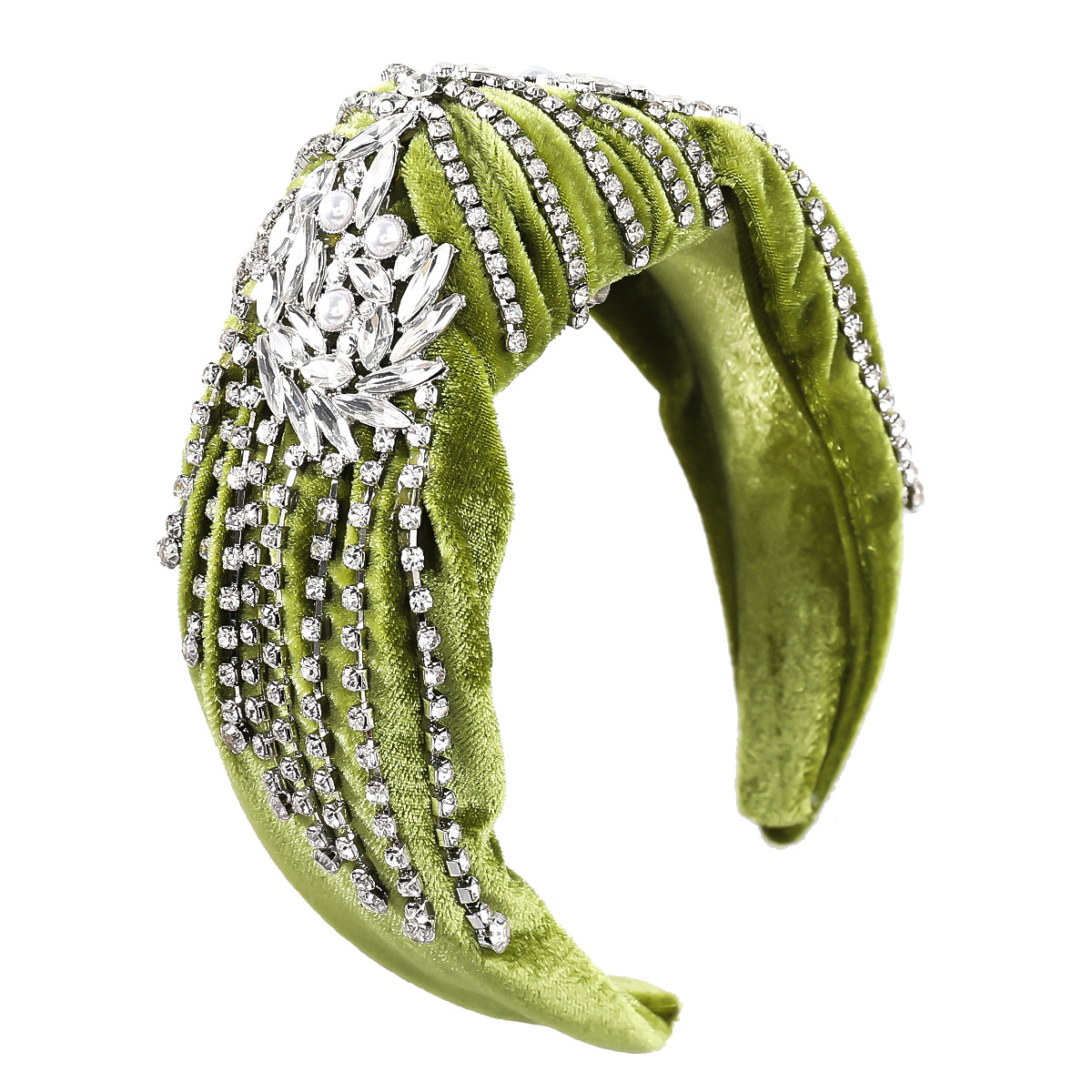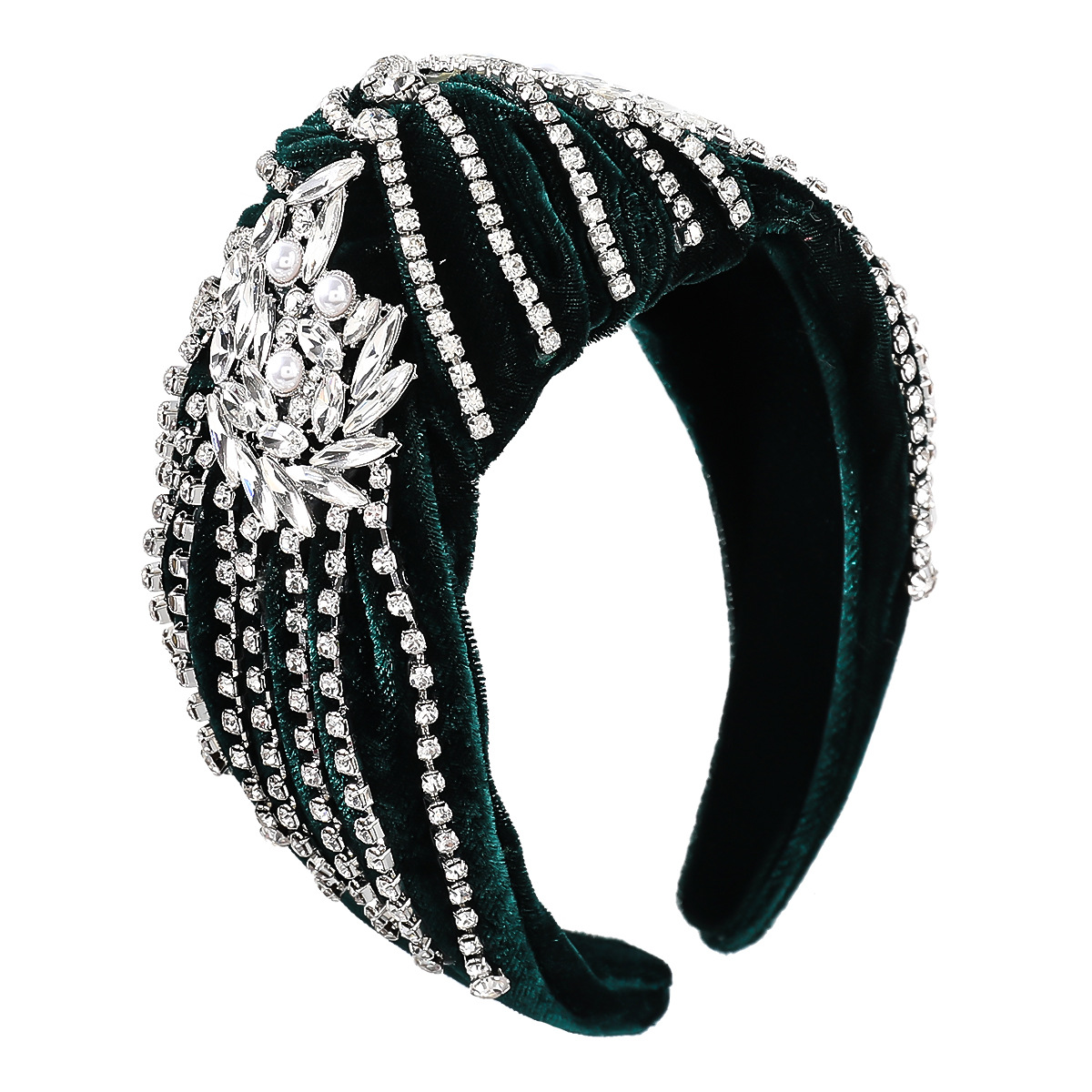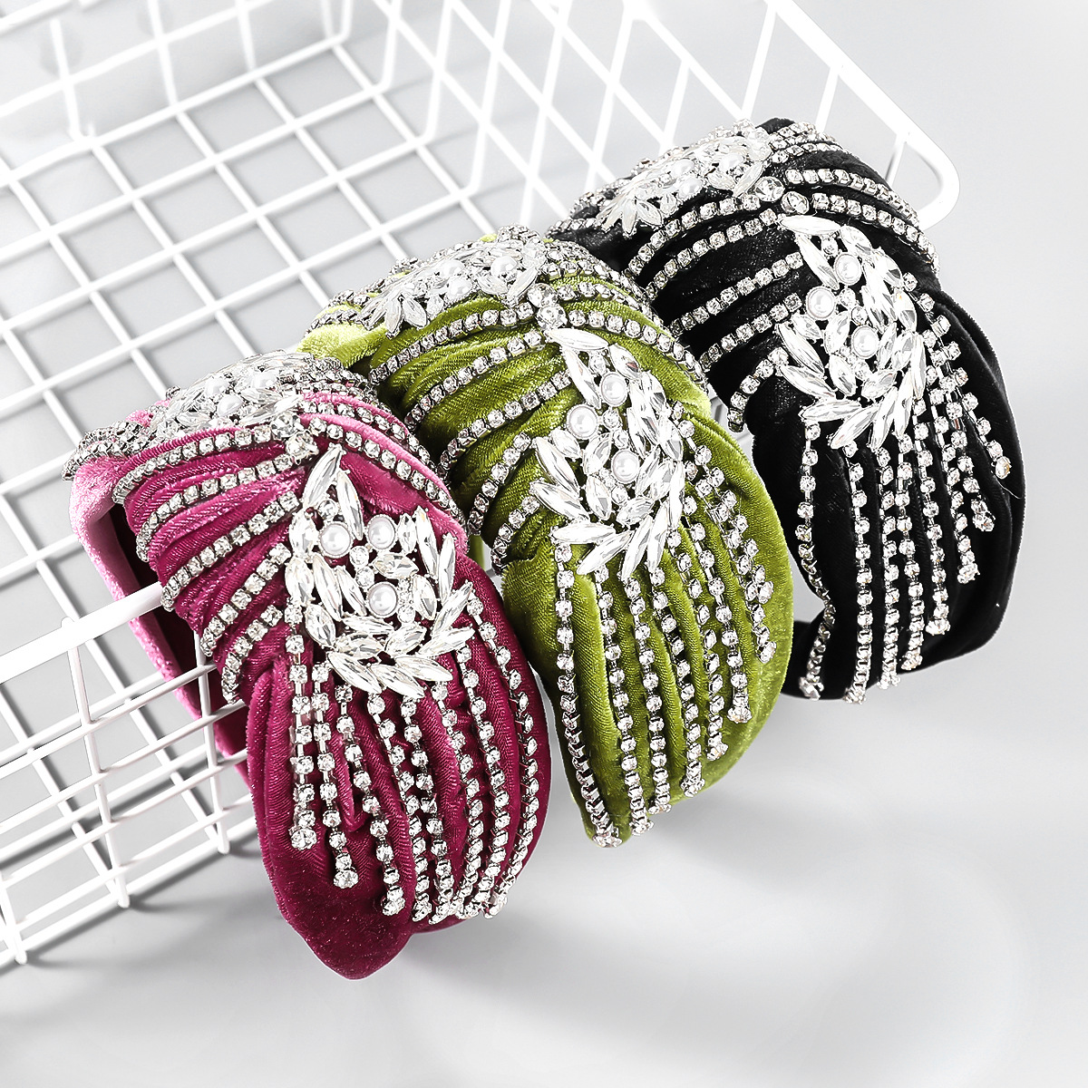 Pleuche Cloth Fabric Diamond Flower Headband Female Wide Brim Knotted Hair Accessories