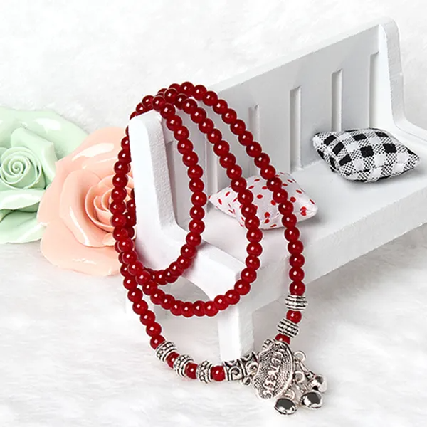 Red Agate Beaded Good Lock Bracelet