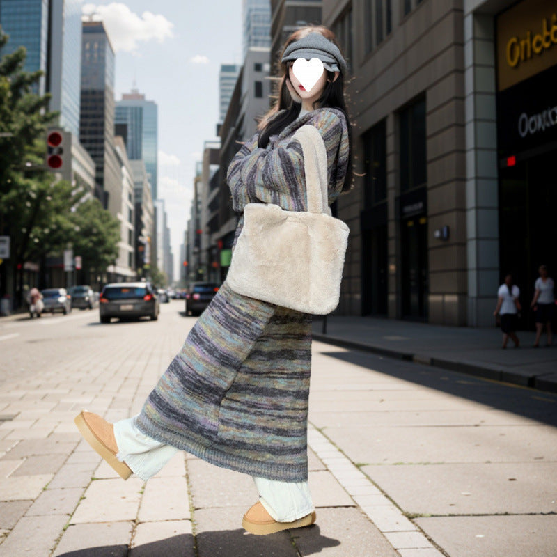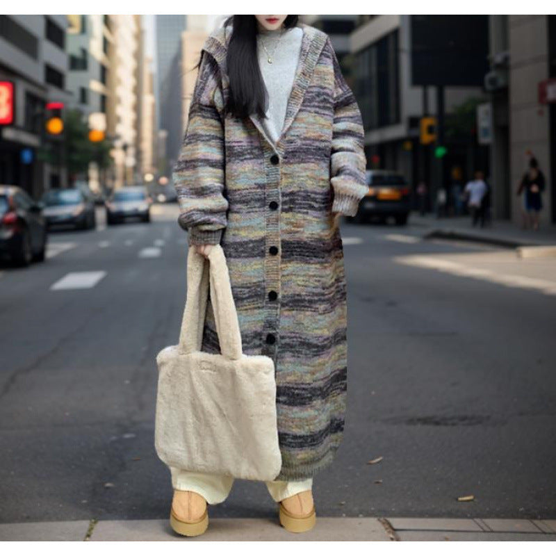 Retro Contrast Color Striped Hooded Sweater For Women
