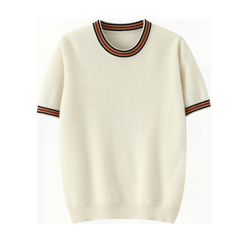 Round Neck Pure Wool Sweater Men's Short Sleeve Early