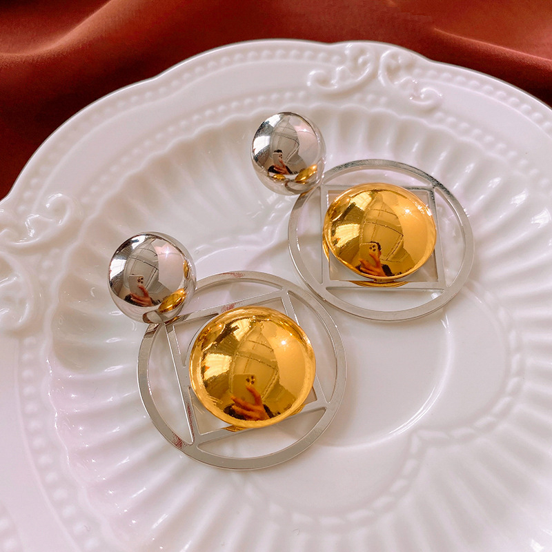 Round Special-interest Design High-grade Earrings Temperament Contrast Color