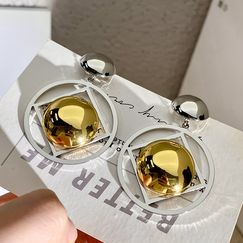 Color: color block geometric metal earrings (Sterling Silver Needle)