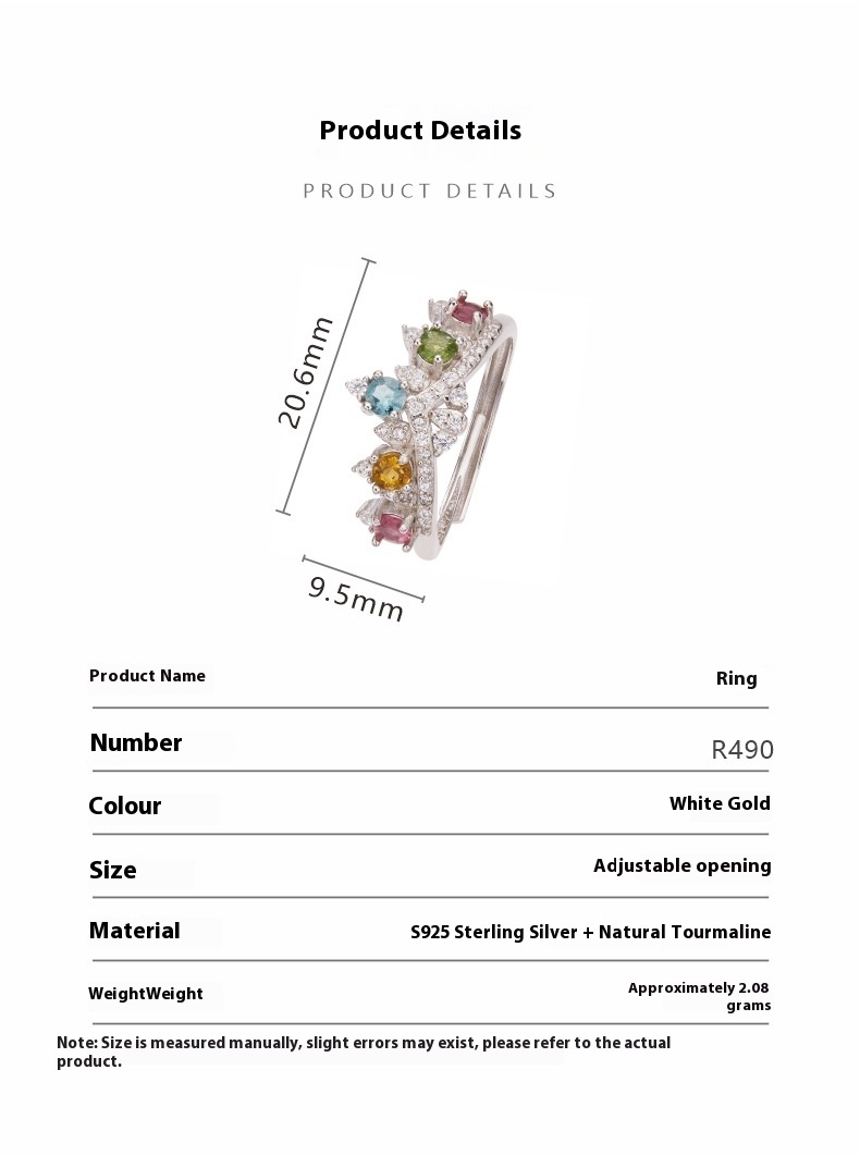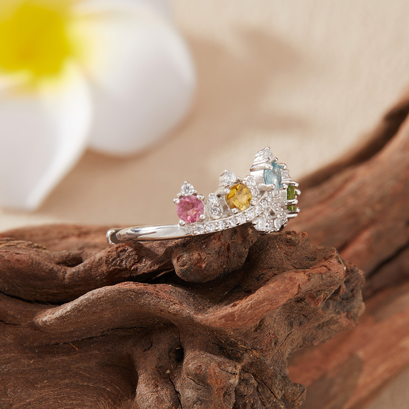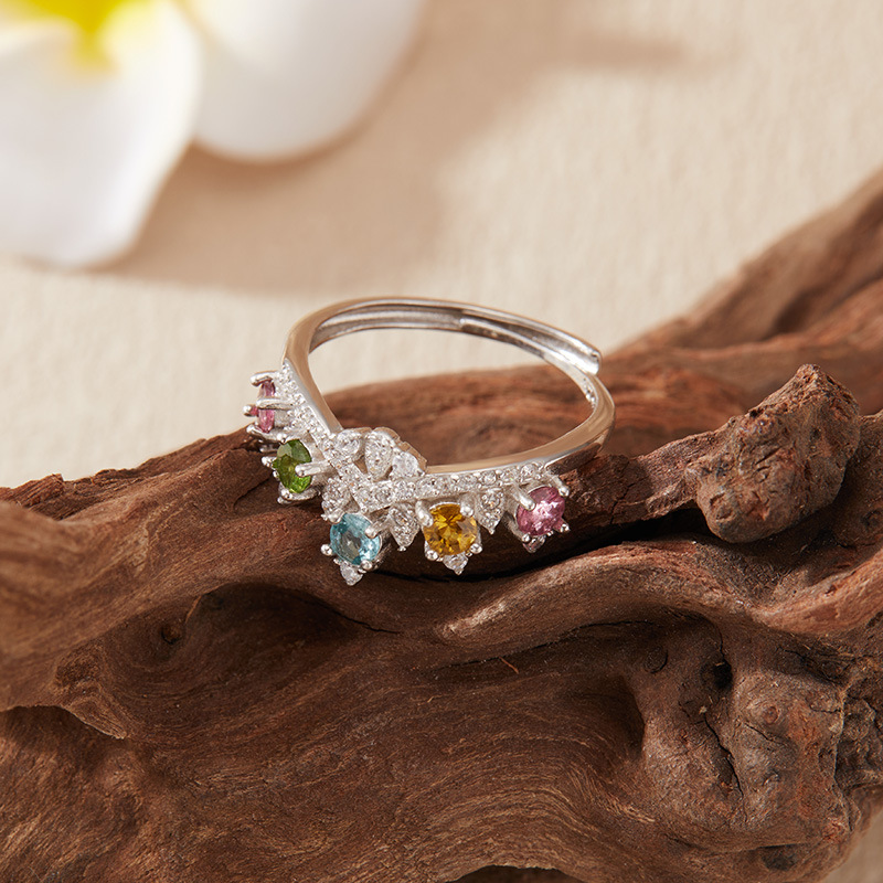 S925 Sterling Silver Crown Rainbow Tourmaline Ring