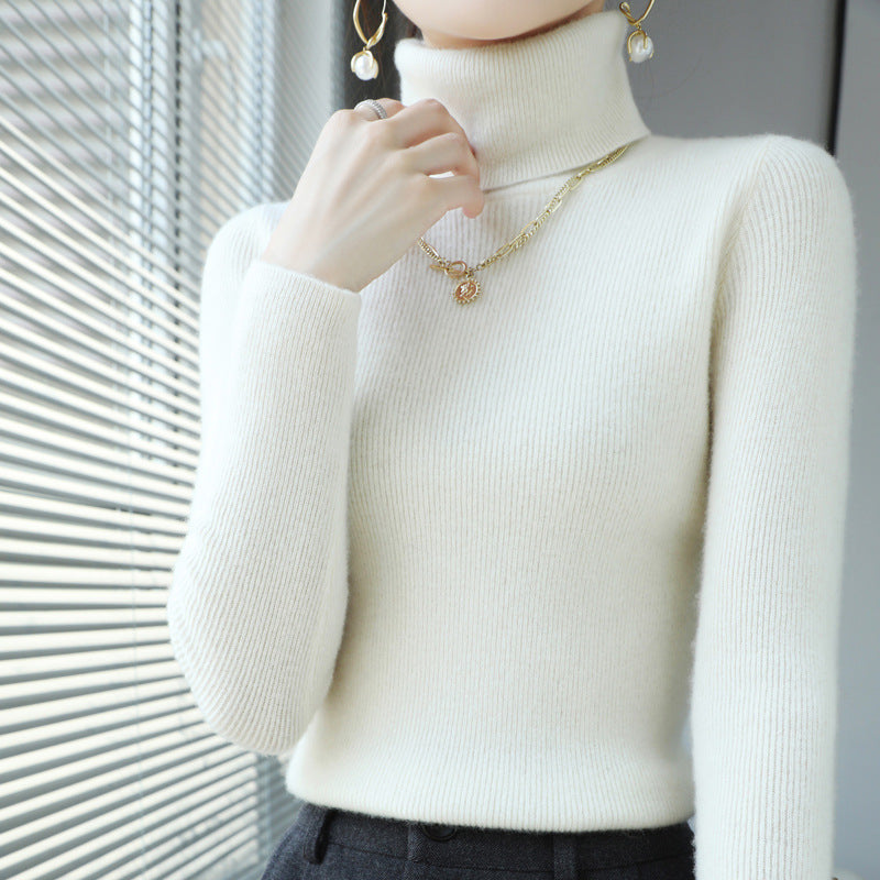 Slim Fit Women's Turtleneck Short Pure Wool Sweater
