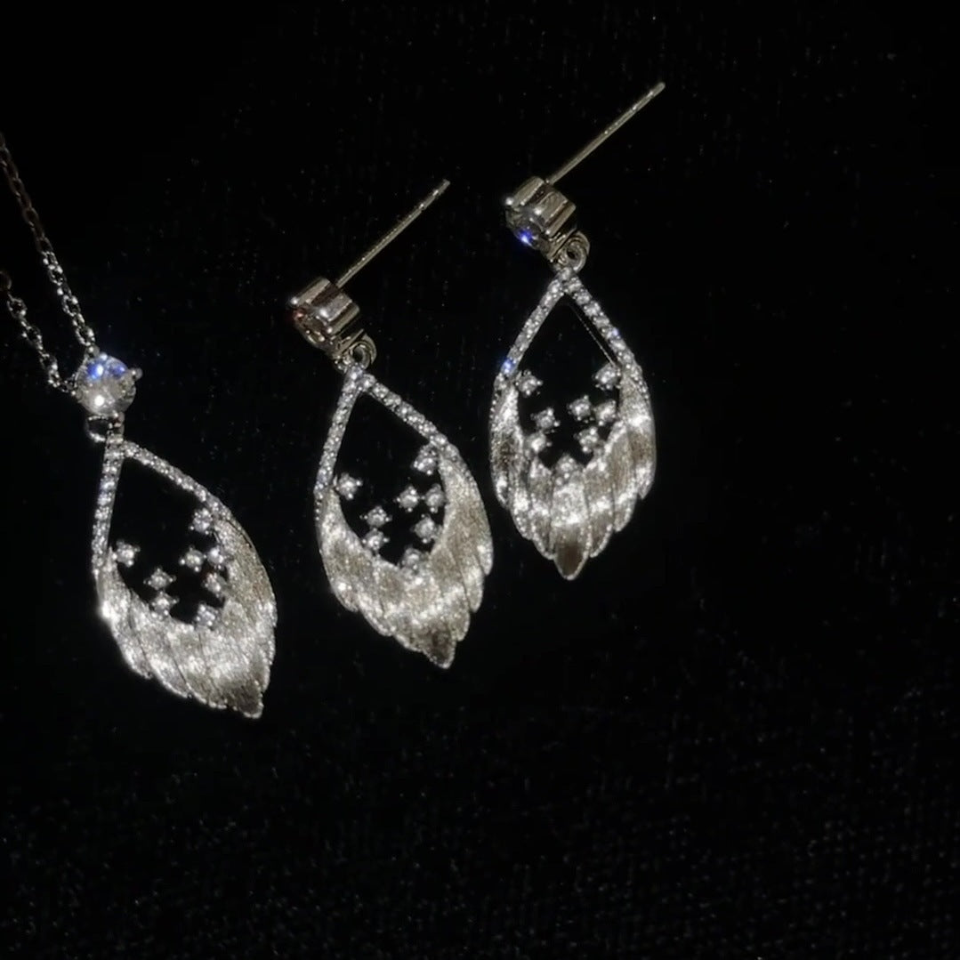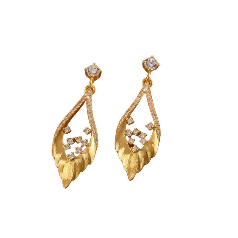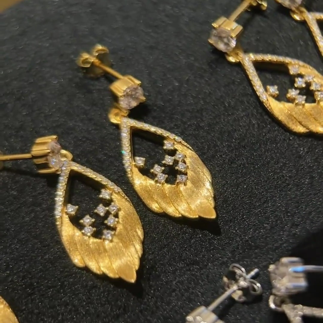 Sterling Silver Brushed Feather Spot Drill Stud Earrings For Women Exquisite Elegant