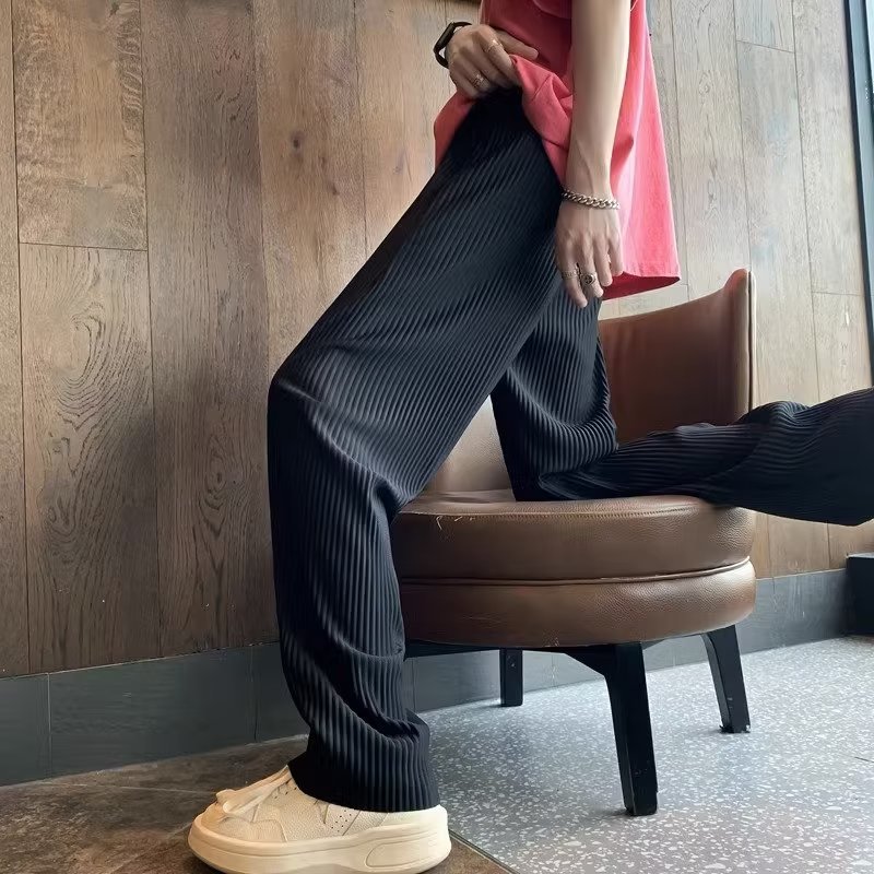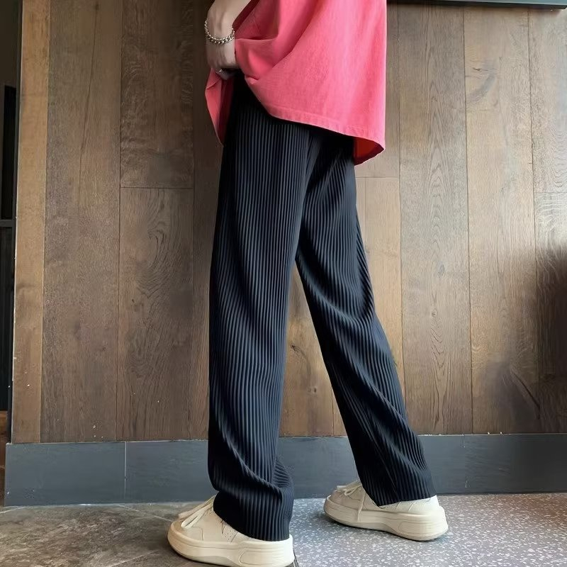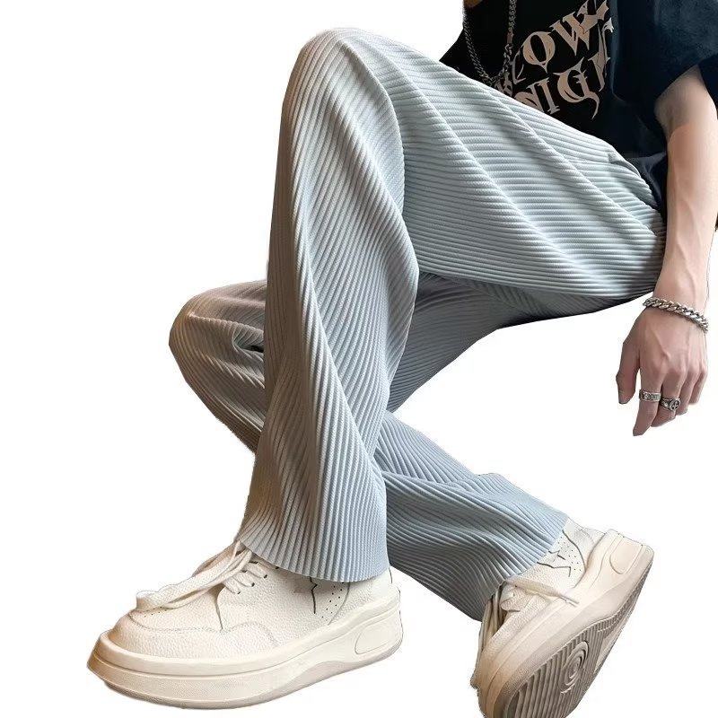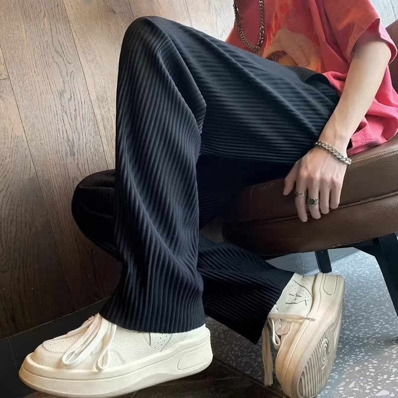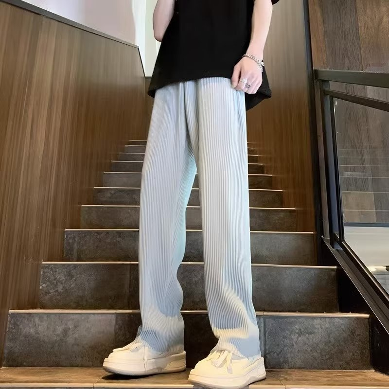 Sunken Stripe Pleated Ice Silk Men's Pants Summer Thin