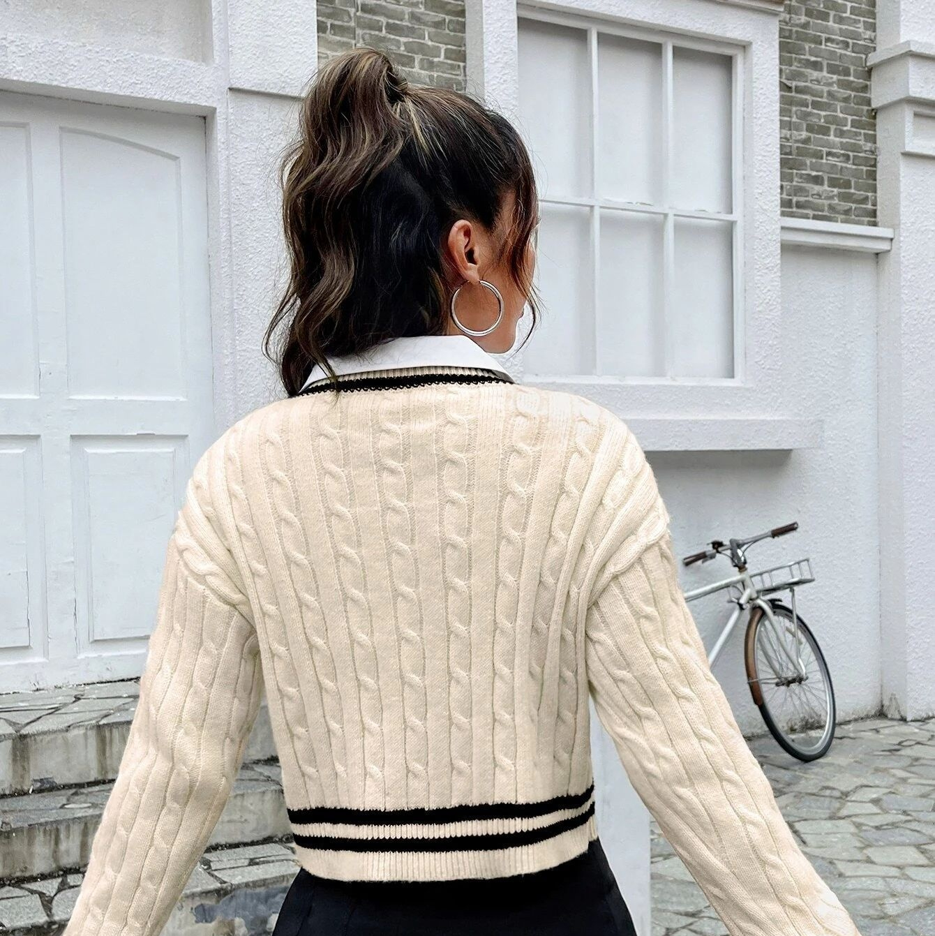 V-neck Youthful Campus Younger Knitted Shirt Slim Striped Long Sleeve