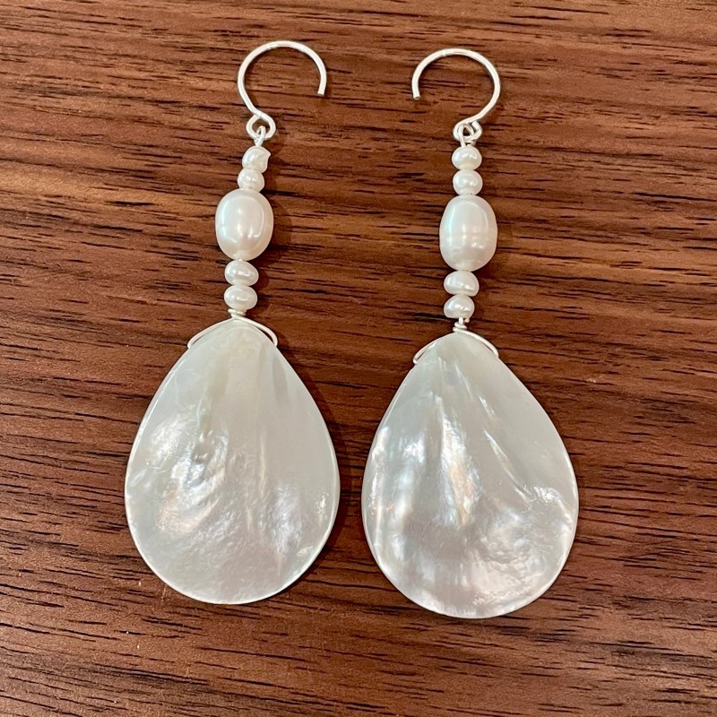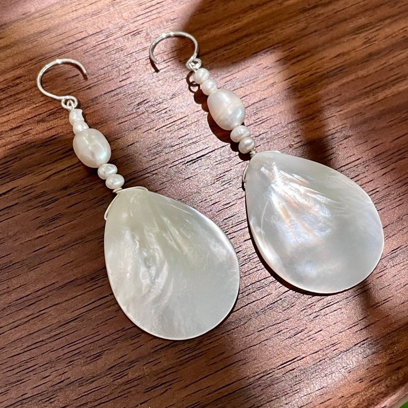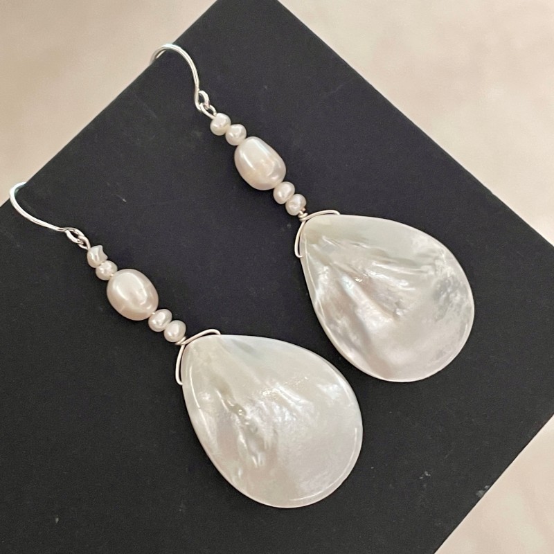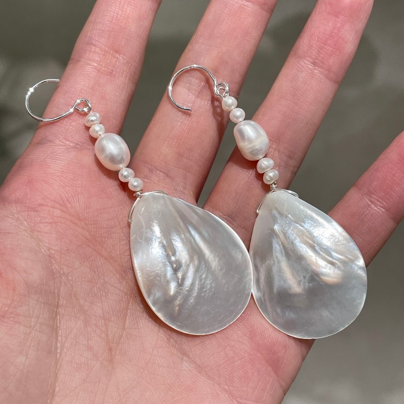 Water Drop White Butterfly Shell Eardrops White Shell Natural Pearl Earrings