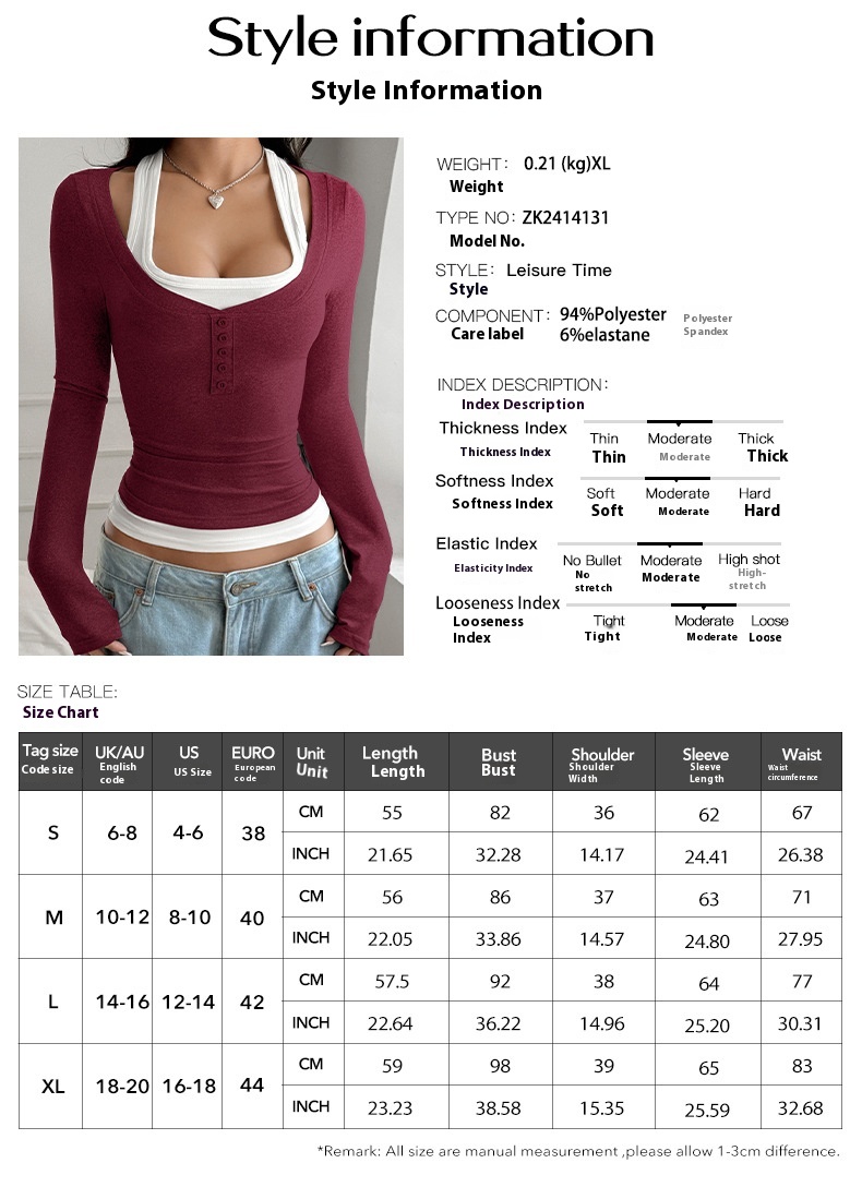Women's Colorblock All-matching Fake Two-piece Suspender Long-sleeved T-shirt