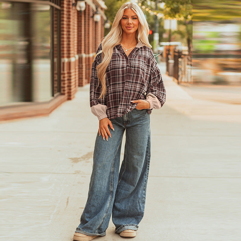 Women's European And American Leisure All-match Plaid Printed Loose Top