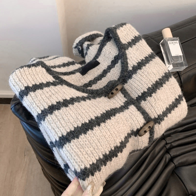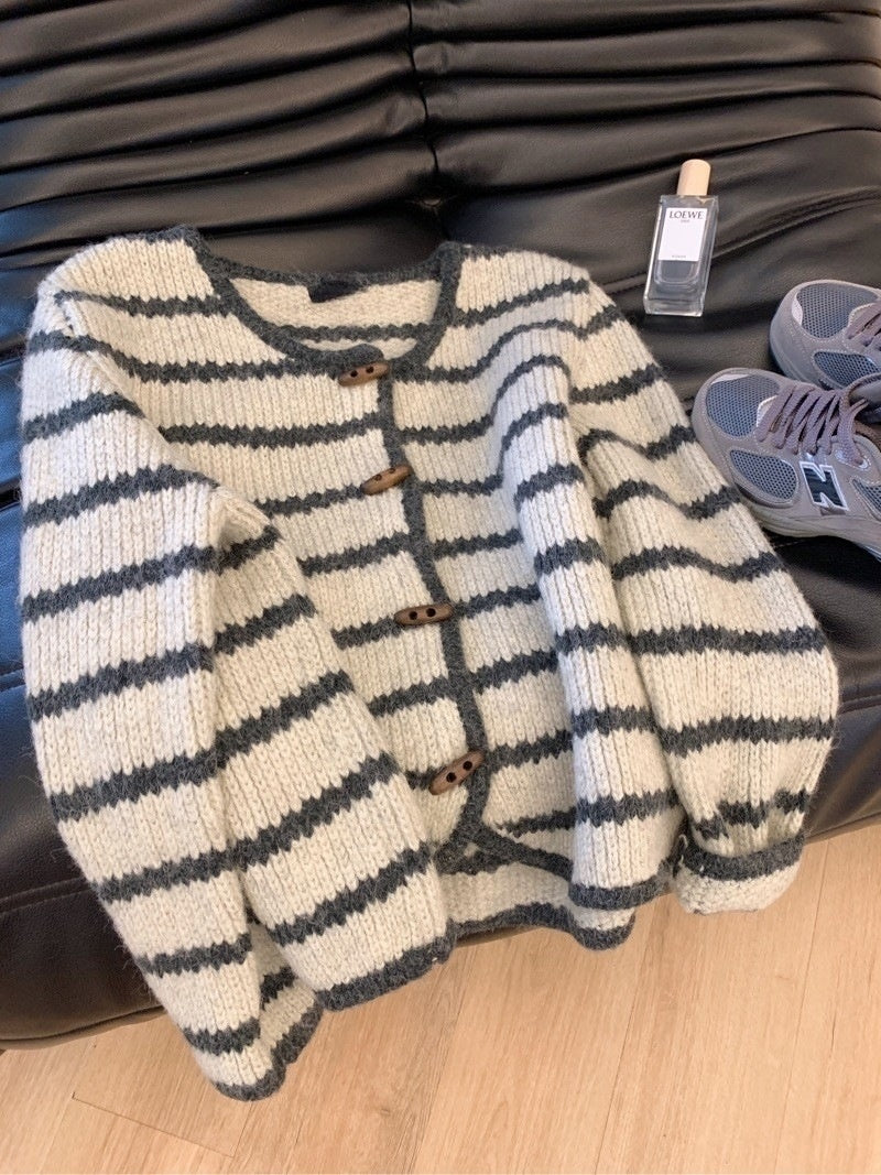 Women's Horn Button Vintage Stripe Knitwear Coat