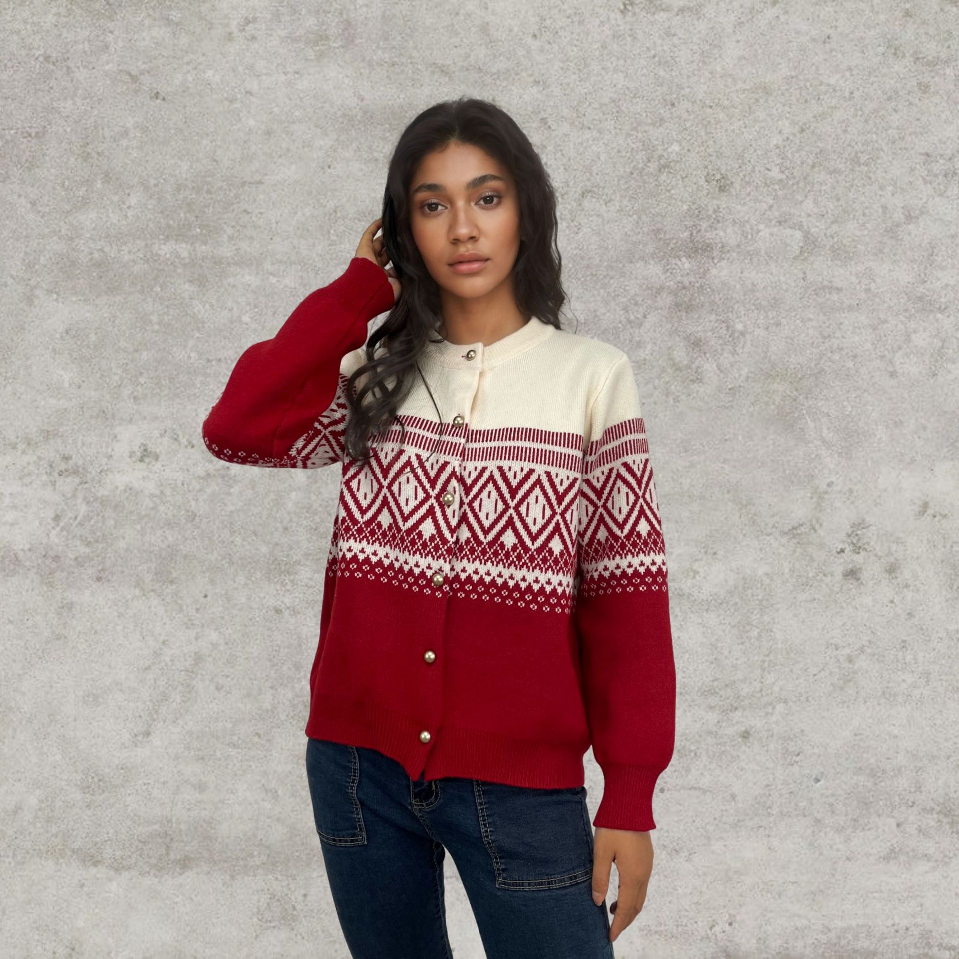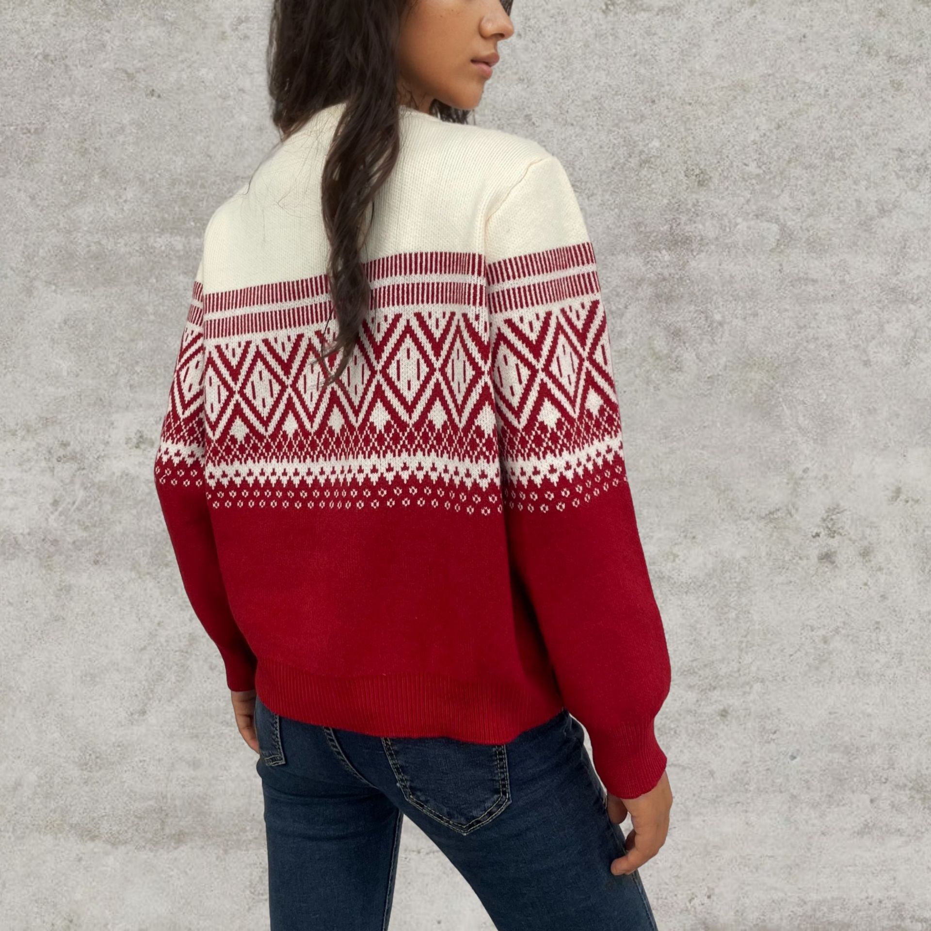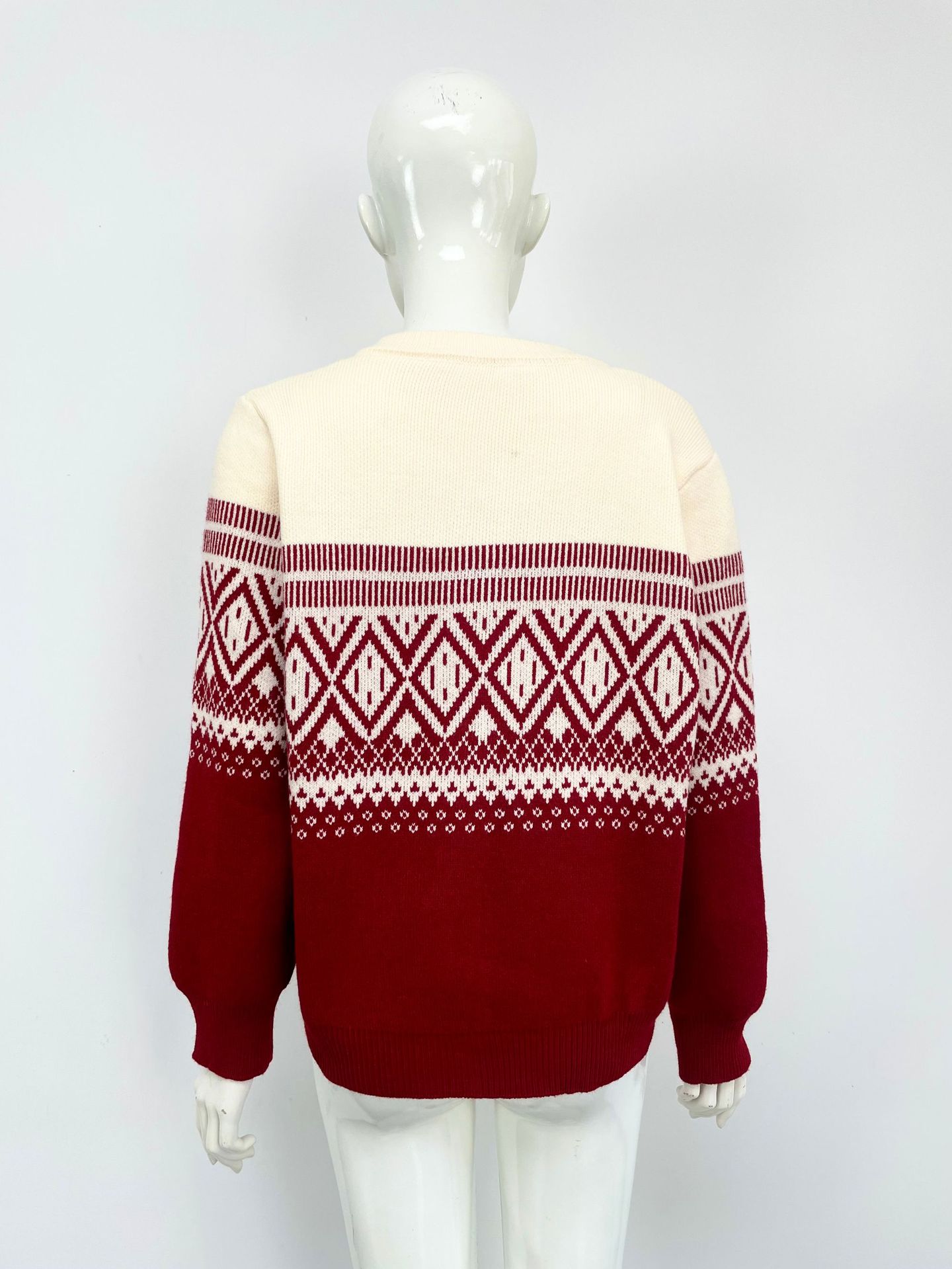 Women's Long-sleeved Contrast Color Diamond Knitted Sweater