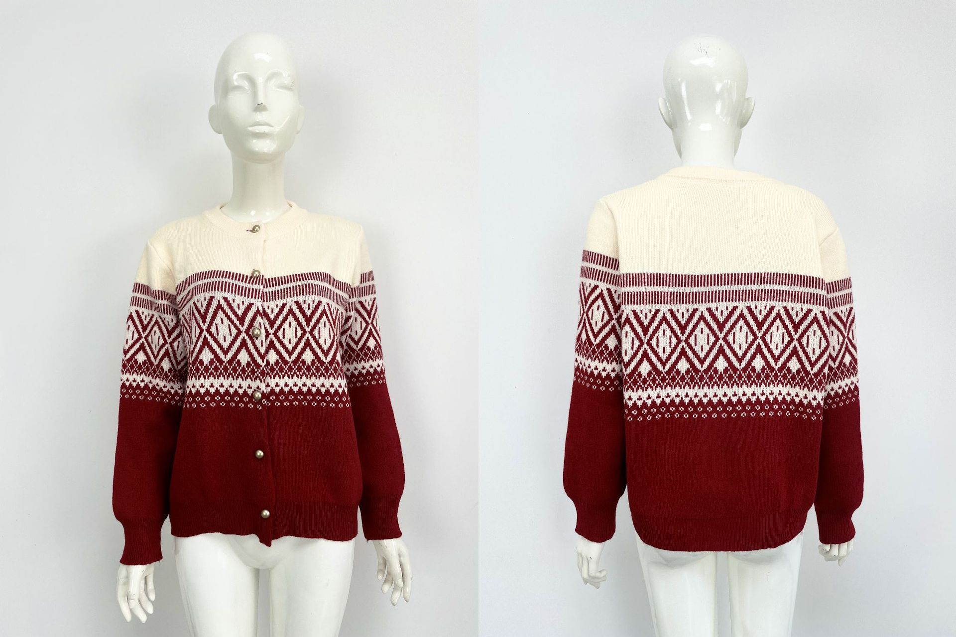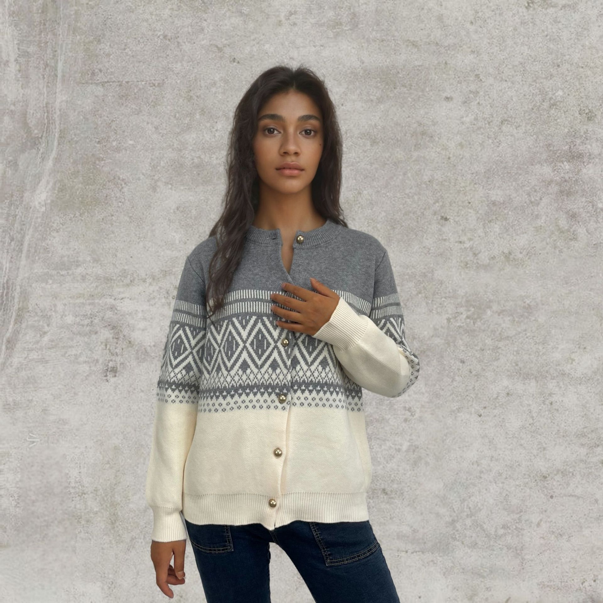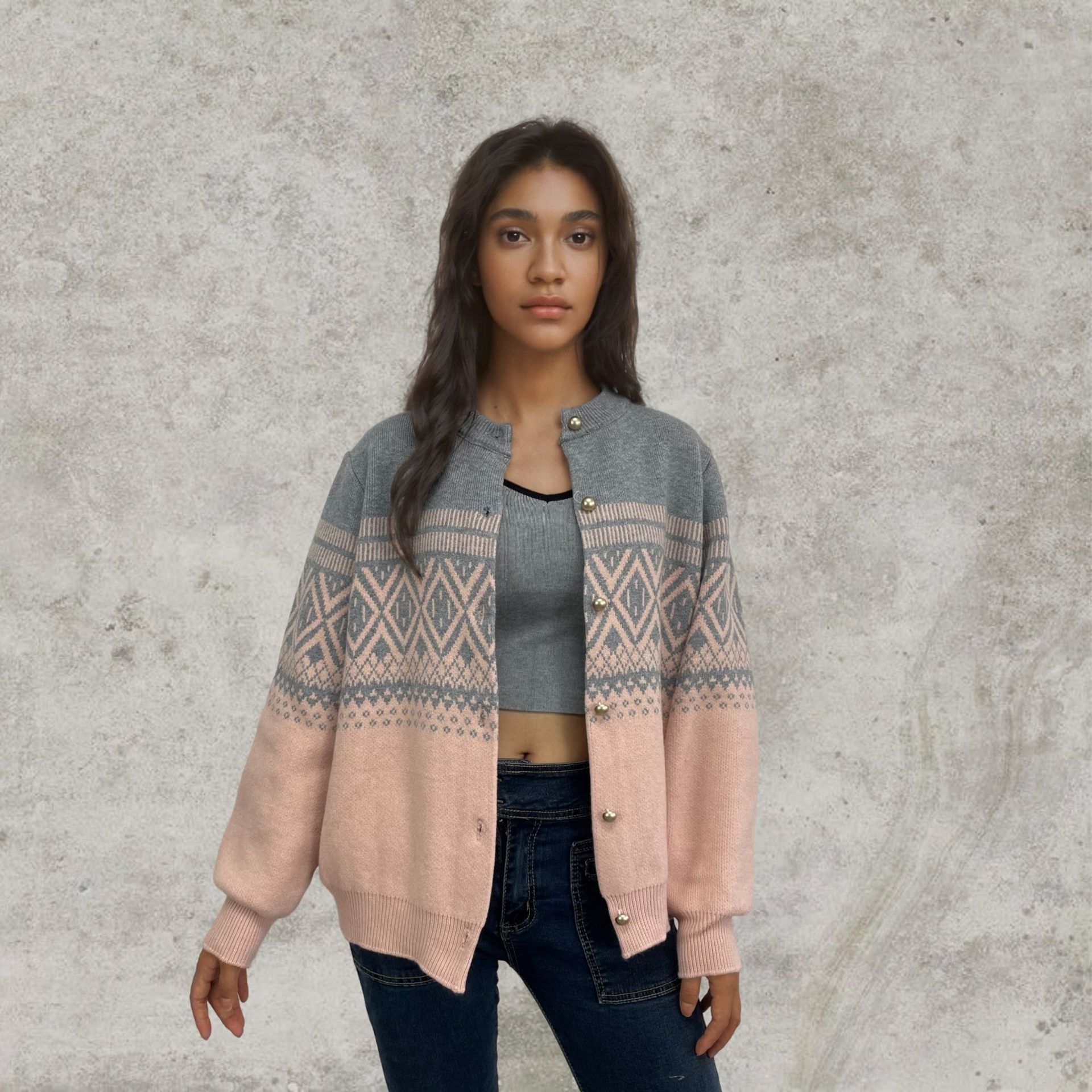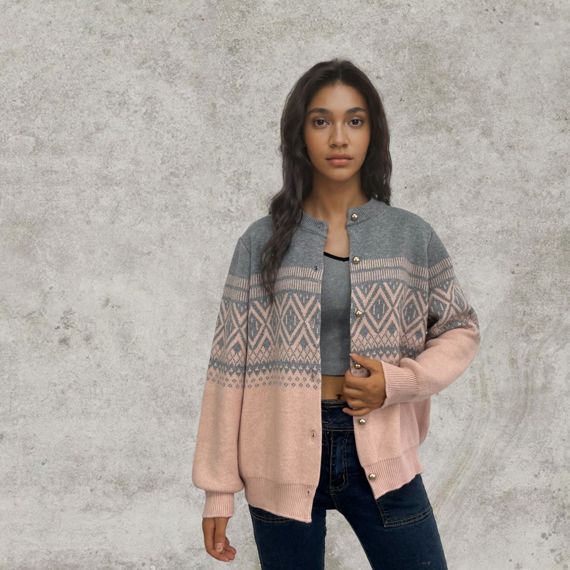 Women's Long-sleeved Contrast Color Diamond Knitted Sweater